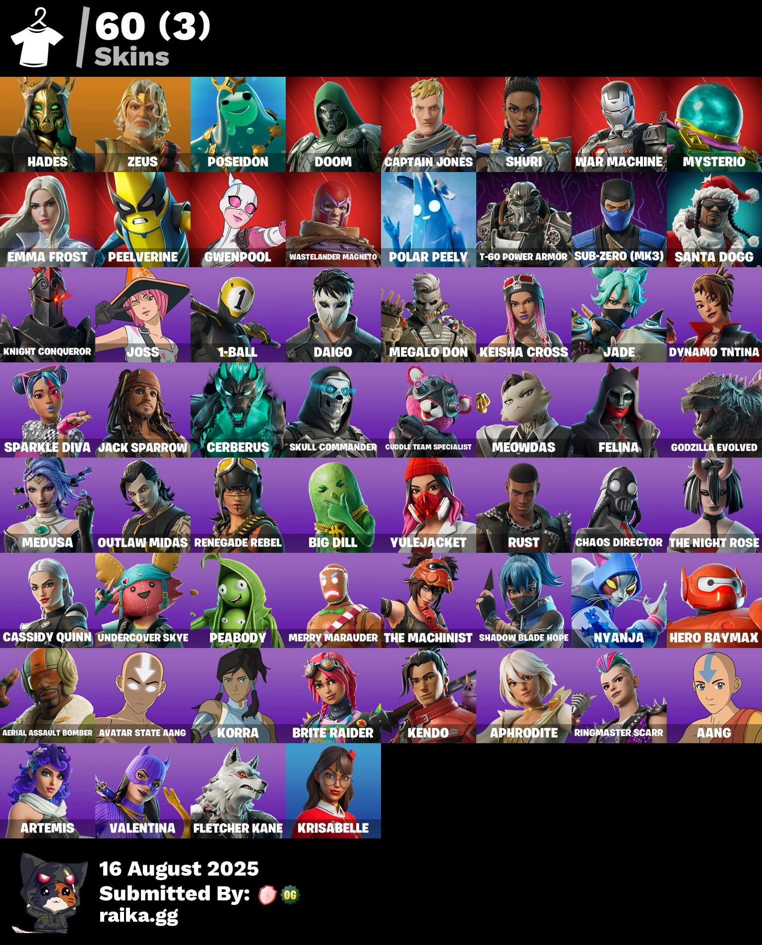 [PC/PSN/XBOX] 60 skins | Hades | Zeus | Poseidon | Doom | Captain Jones | Shuri | War Machine | Mysterio | Emma Frost | Peelverine | Gwenpool | 700 VB