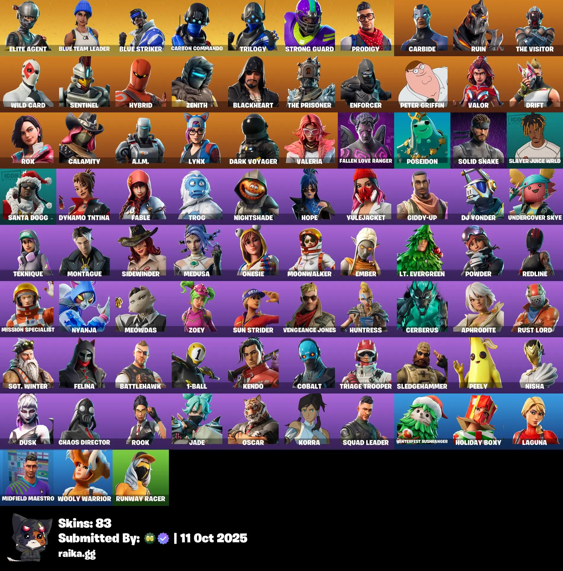 [PC/PSN/XBOX] 83 skins | Elite Agent | Take The L | Blue Team Leader | Blue Striker | Carbon Commando | Trilogy | Strong Guard | Prodigy | Carbide | Ruin | The Visitor | 350 VB