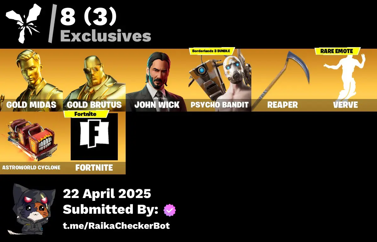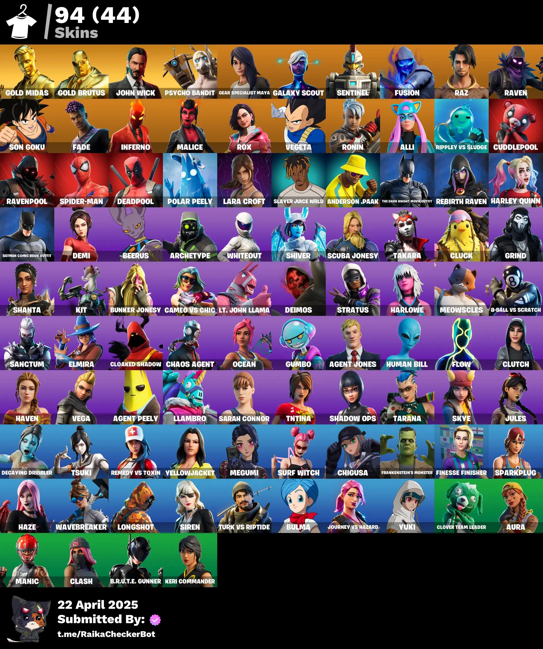 [PC/PSN/XBOX] 94 skins | Gold Midas | Gold Brutus | John Wick | Psycho Bandit | Gear Specialist Maya | Galaxy Scout | Sentinel | Fusion | Raz | Raven | 720 VB