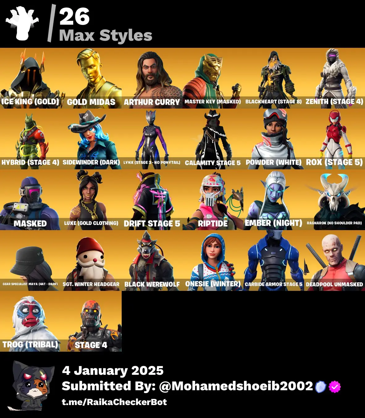 [PC/PSN/XBOX] 98 skins | Gold Midas | Sultura | Fixer | Rox | Gear Specialist Maya | The Ice King | Luxe | The Prisoner | A.I.M. | Valor | Calamity | 200 VB