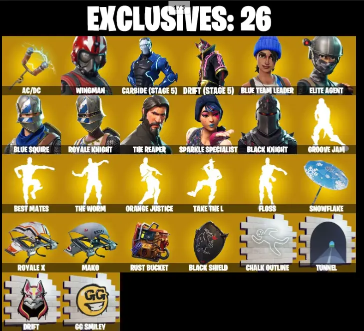 ⚡️PC/PSN/XBOX⚡️Exclusives 26 🔮27 Skins🔮 Black Knight💎Mako💎AC/DC💎Sparkle Specialist💎Floss💎Royale Knight