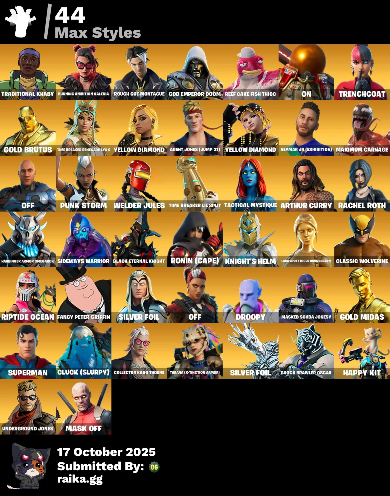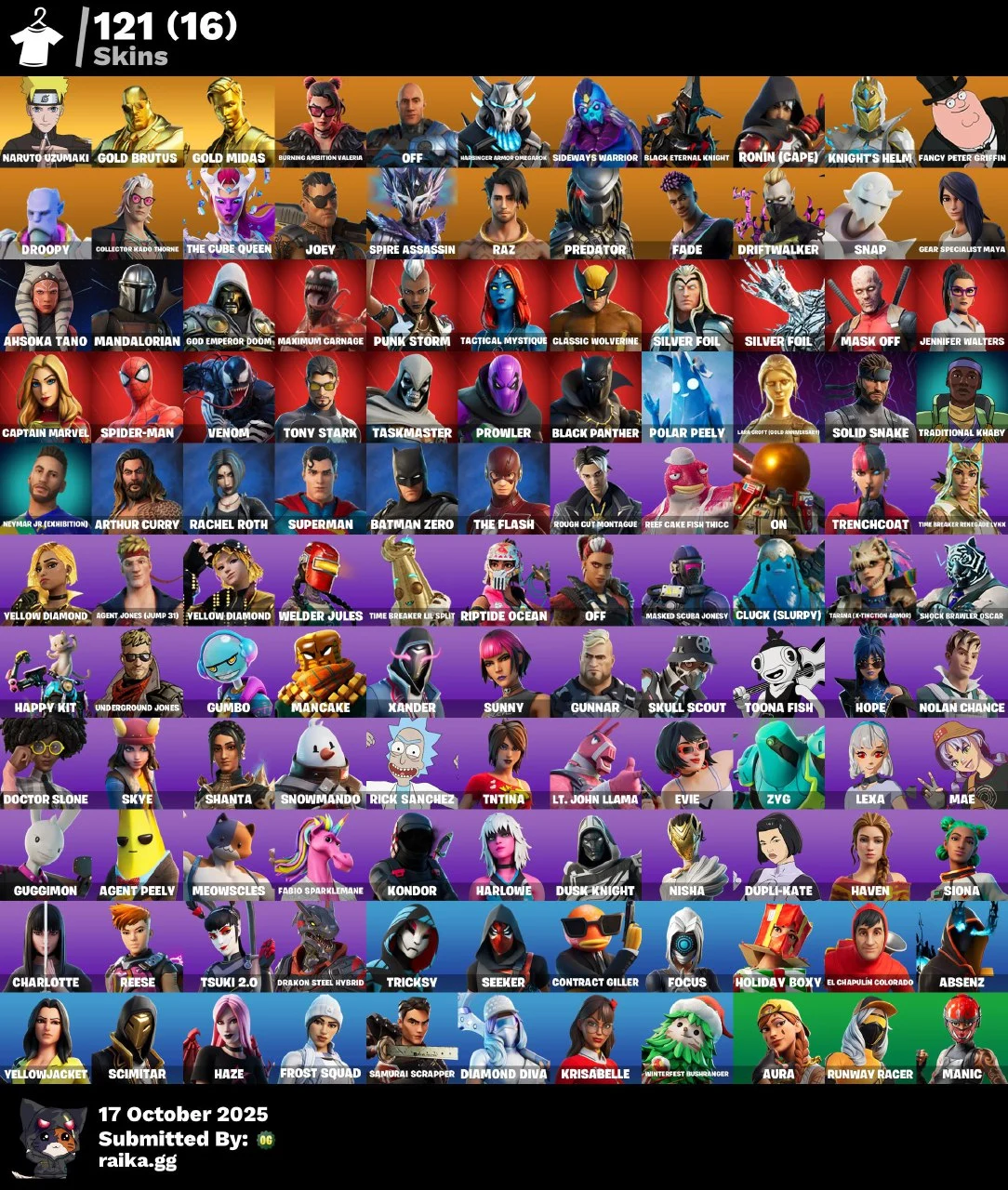[PC/XBOX] 121 skins | Aura | Tony Stark | Star Wand | Mandalorian | Laugh It Up | Naruto Uzumaki | Ice Breaker	lai470