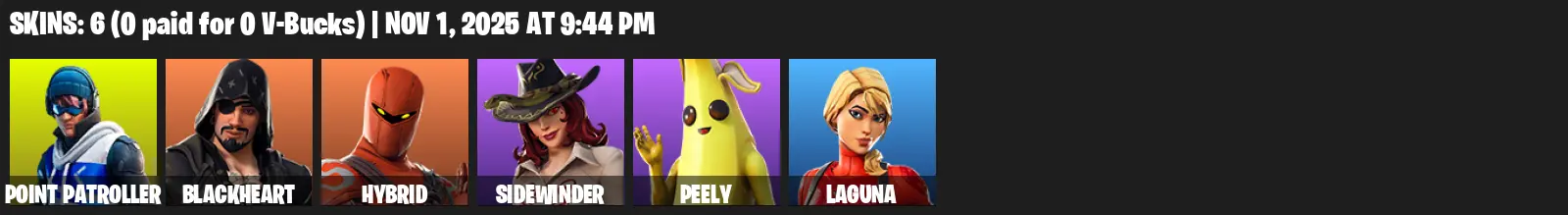 [PC/XBOX] | 6 skins | Point Patroller | Blackheart | Hybrid | Sidewinder | Peely | Laguna | Dragon's Claw | #QTW7044 | #MBFN