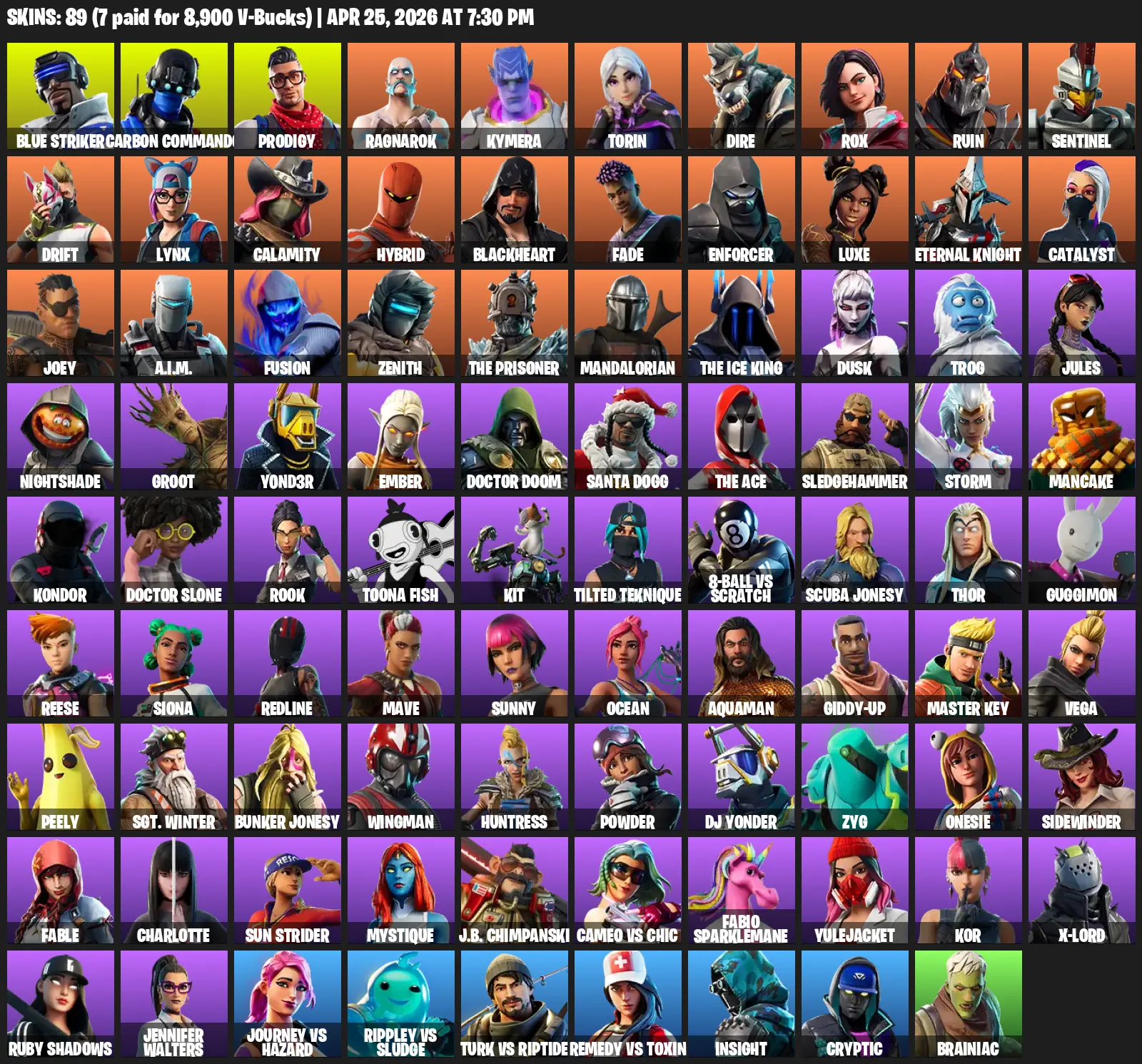 [PC/XBOX] | 89 skins | 2350 V-bucks | Leviathan Axe | Blue Striker | Carbon Commando | Prodigy | Ragnarok | Kymera | Torin | Dire | Rox | #OCV2514