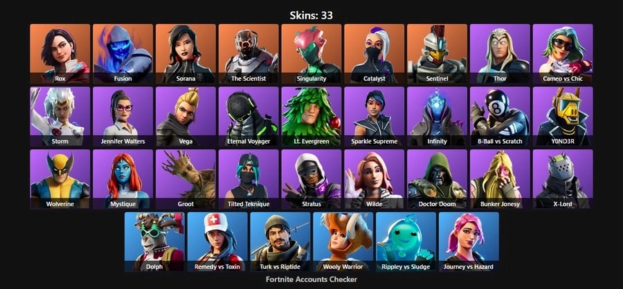PC/XBOX/PSN 163 Skins⭐️ | Midas | Deadpool | Peely | Lara Croft | The Origin | Eternal Knight | Spire Assassin | Rox | Sorana | Ruin | Dire