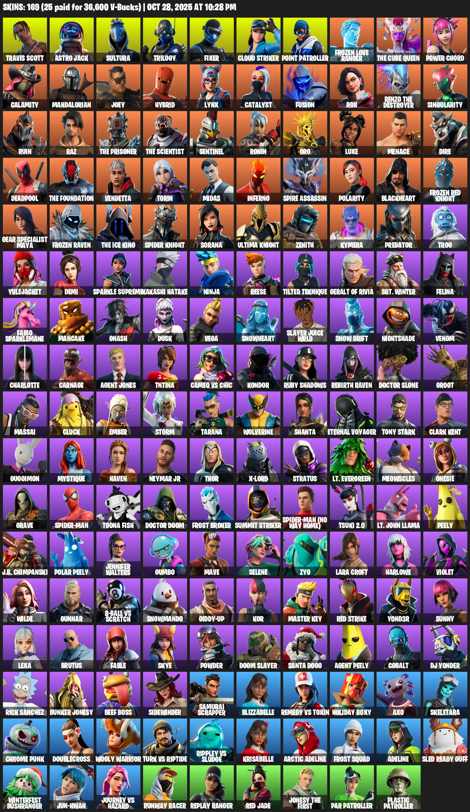 [PC/XBOX/PSN] 169 Skins | Travis Scott | Astro Jack | Sultura | Trilogy | Fixer | Cloud Striker | Point Patroller | Frozen Love Ranger | The Cube Queen | Power Chord | Calamity | Mandalorian | Joey | Hybrid | Lynx | Catalyst | Fusion | Rox