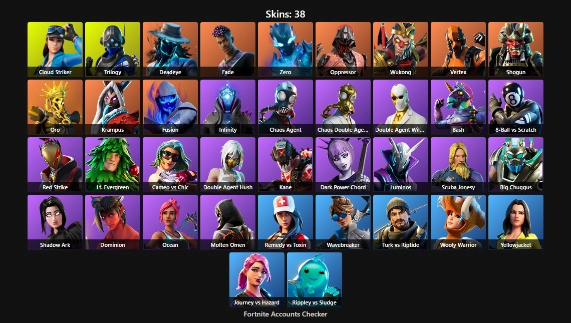 PC/XBOX/PSN 38 Skins⚡ | Cloud Striker | Trilogy | Deadeye | Fade | Zero | Oppressor | Wukong | Vertex | Shogun | Oro | Krampus | Fusion | Infinity