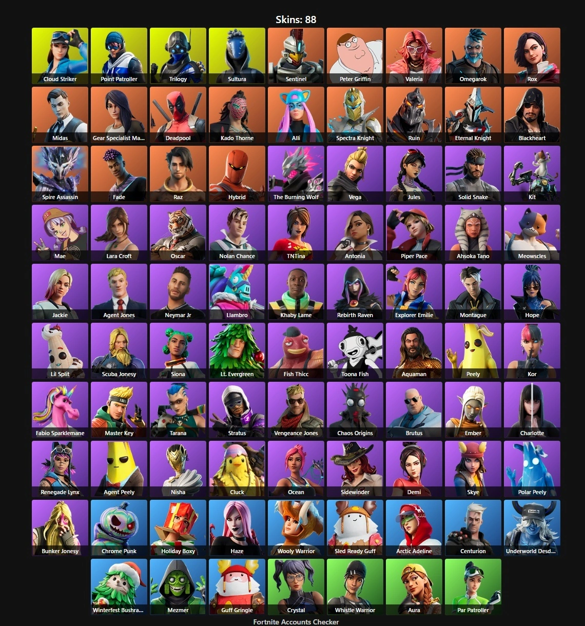 PC/XBOX/PSN 88 Skins⚡ | Midas | Deadpool | Lara Croft | Peely | Cloud Striker | Point Patroller | Trilogy | Sultura | Sentinel | Peter Griffin | Valeria