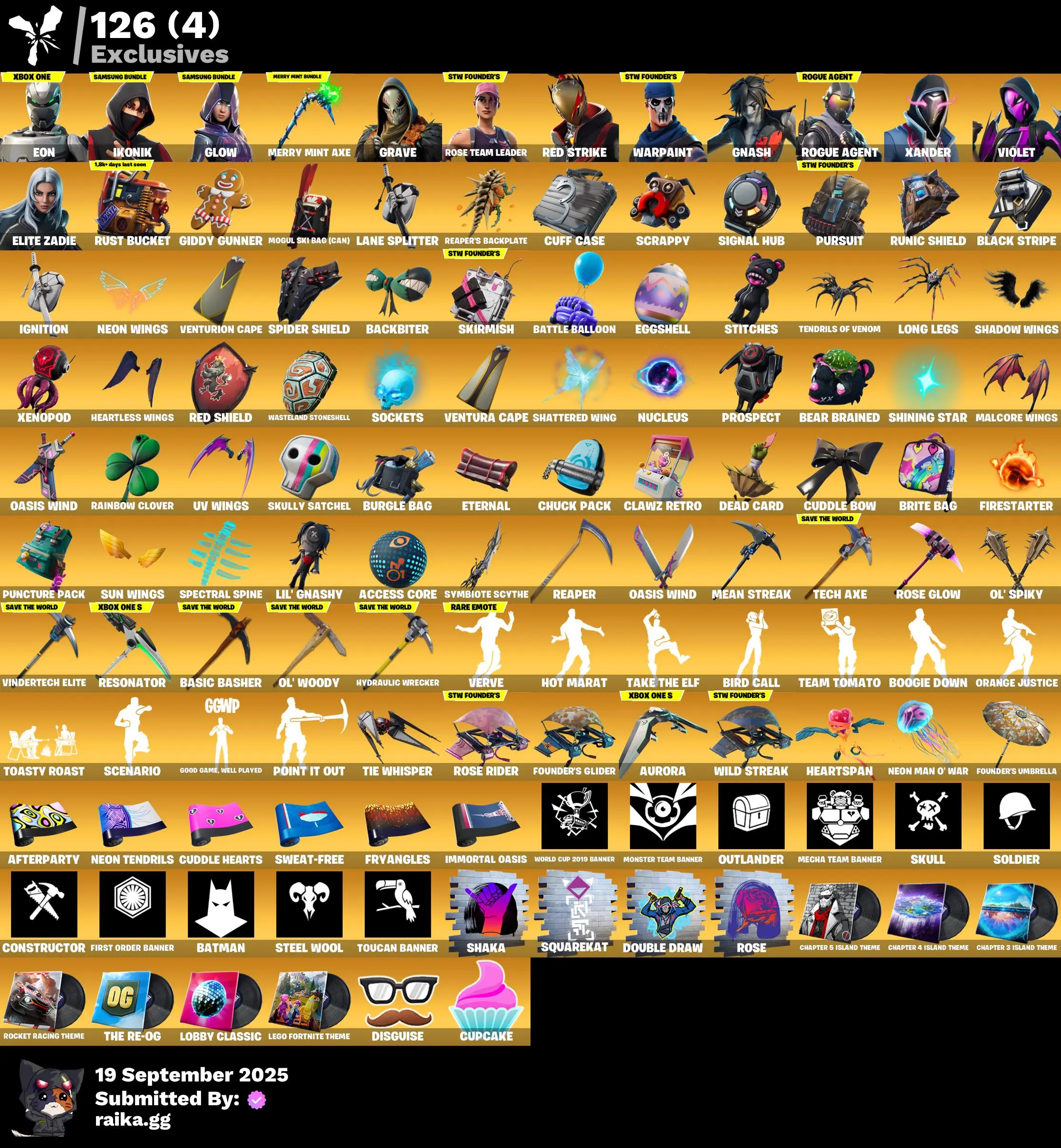 STACKED EXCLUSIVE 🌟 PC/SWITCH 🎮 281 skins | OG STW | Eon Full Bundle | IKONIK | Elite Zadie | Merry Mint Axe | Glow | Rogue Agent | Xander | Drift | Omegarok | Red Knight | Snap | Zenith | Twyn | Catalyst | 110 VB