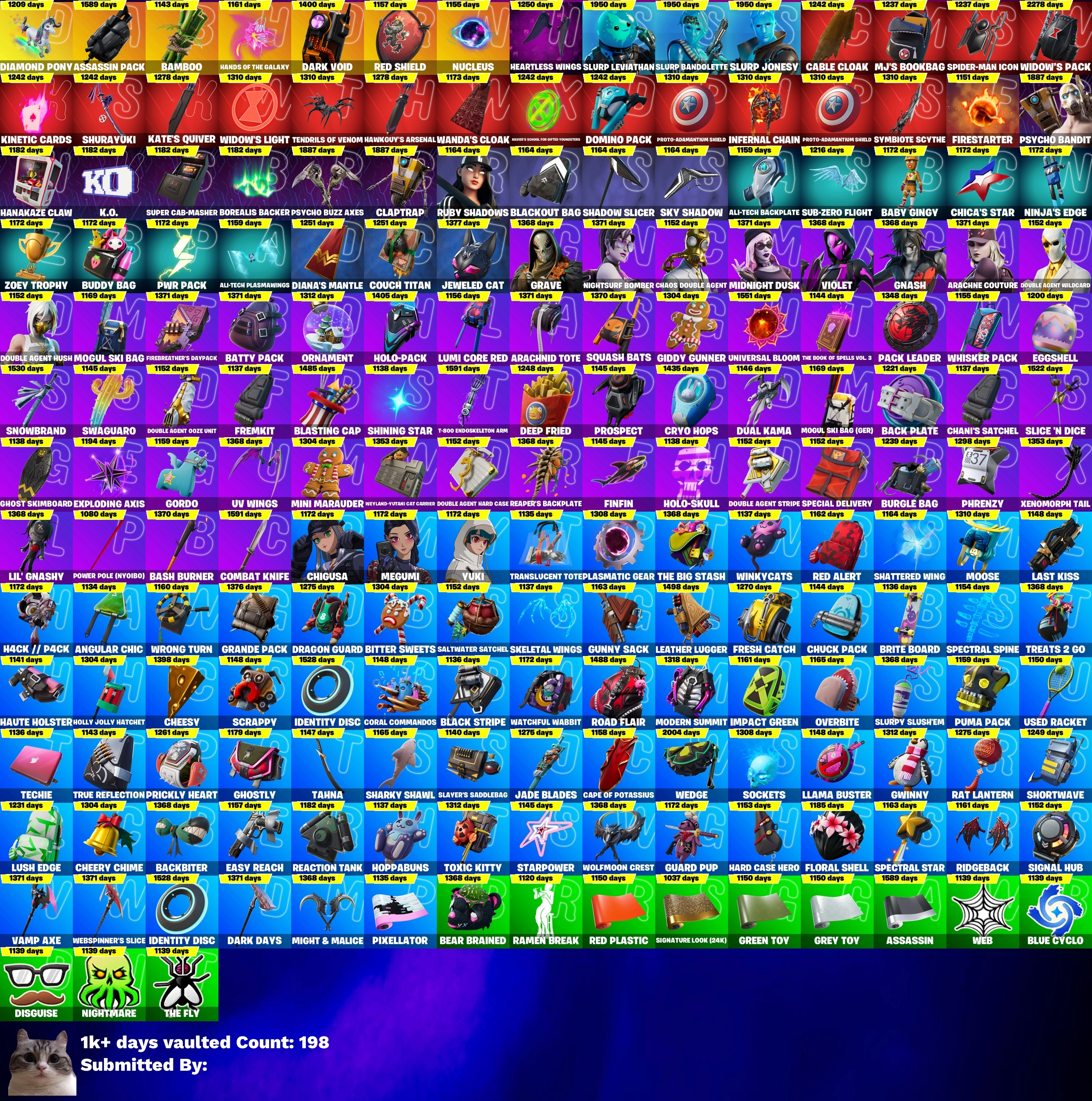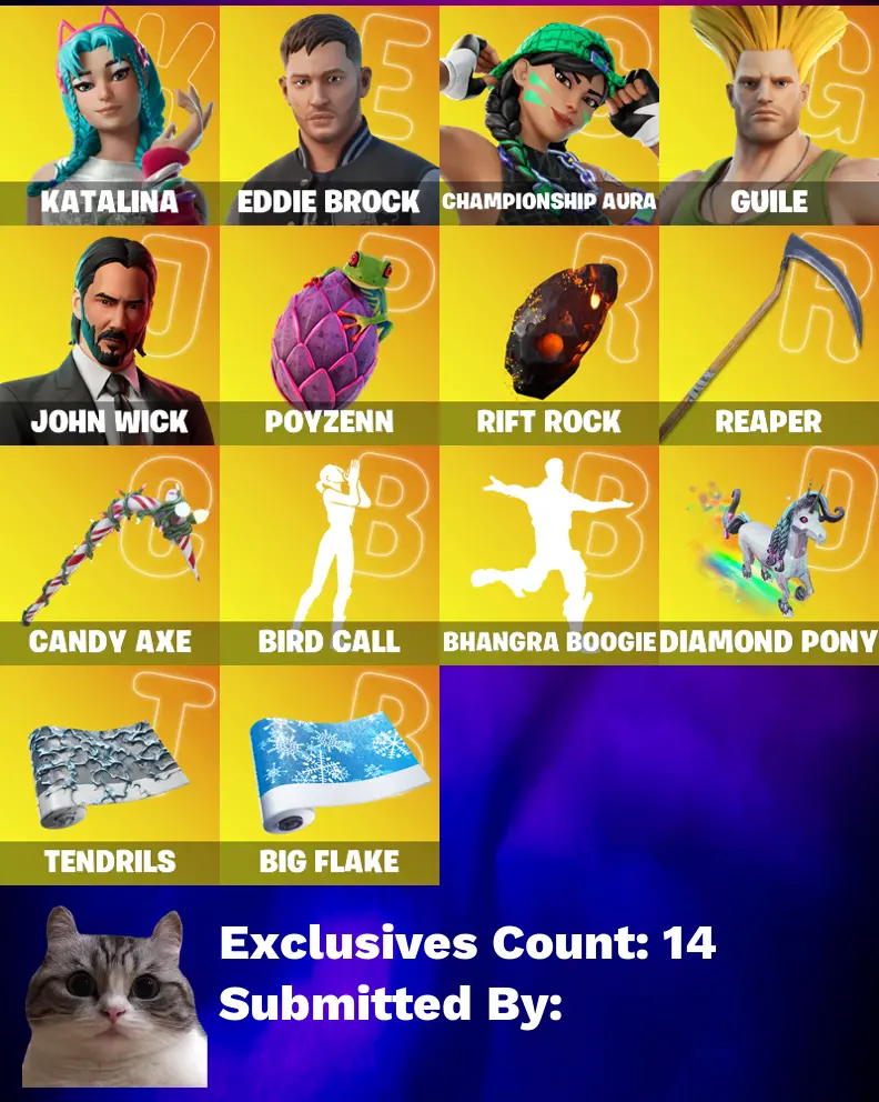 💫🔥 Ultimate Locker Lineup 🔥💫 [PC/PSN/XBOX] 651 SKINS💎✨Renegade Raider 🛡️💥Katalina 🌪️🧬Eddie Brock 🕷️💪Championship Aura 🏆💫Guile 👊 John Wick 🎯🖤Poyzenn 🧪💚Rift Rock 🌌🌠Reaper ☠️⚔️Candy Axe 🍬🪓Bird Call . 💎🐴 Malik 👑🔥 Frostbite ❄️🧊 Galaxy Scout 🌌🎁