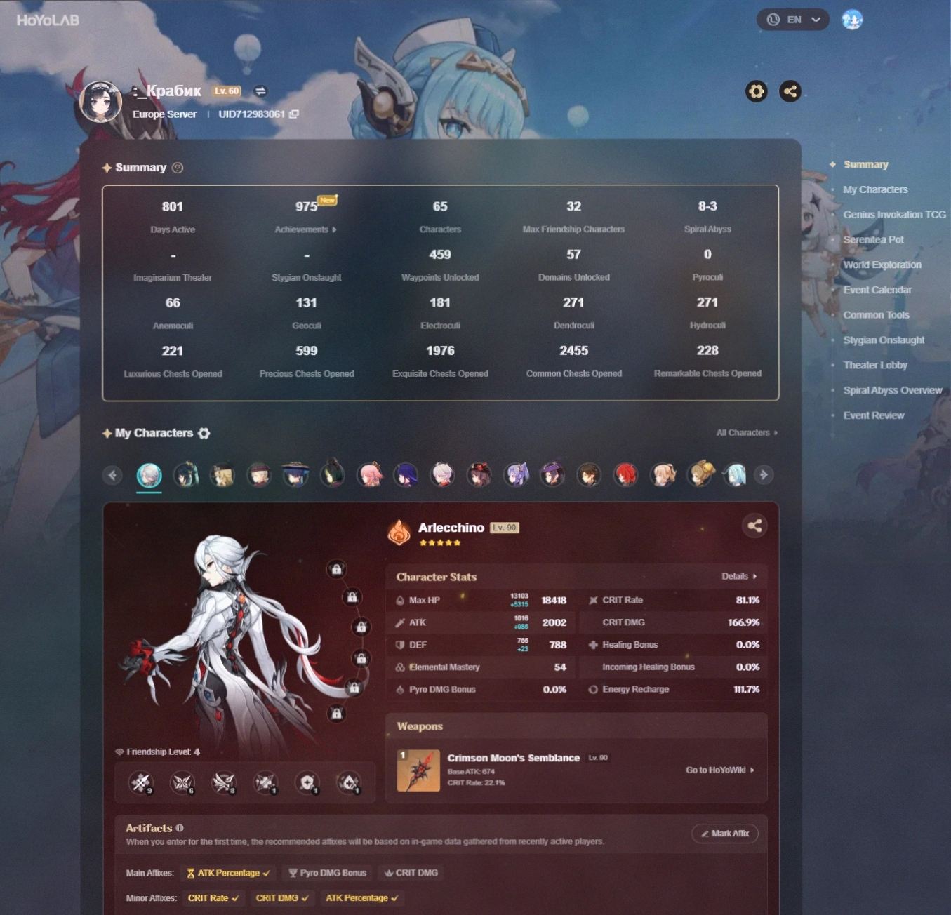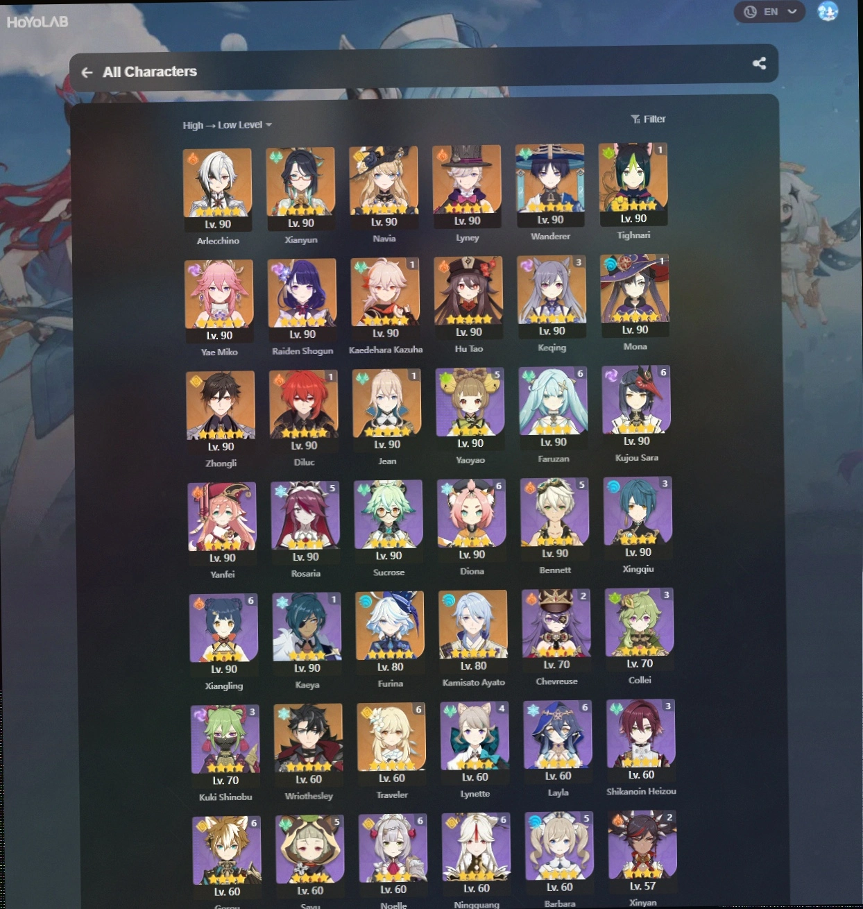 [EU HANDLEVELED] AR 60 + 25 EVENT LEGS + Kazuha C1+Arlecchino|Sign+Xianyun+Navia+Furina+Kinich+Wriothesley+Zhongli|Sign+Lyney+Raiden + FULL ACCESS + EMAIL #CODE-164021