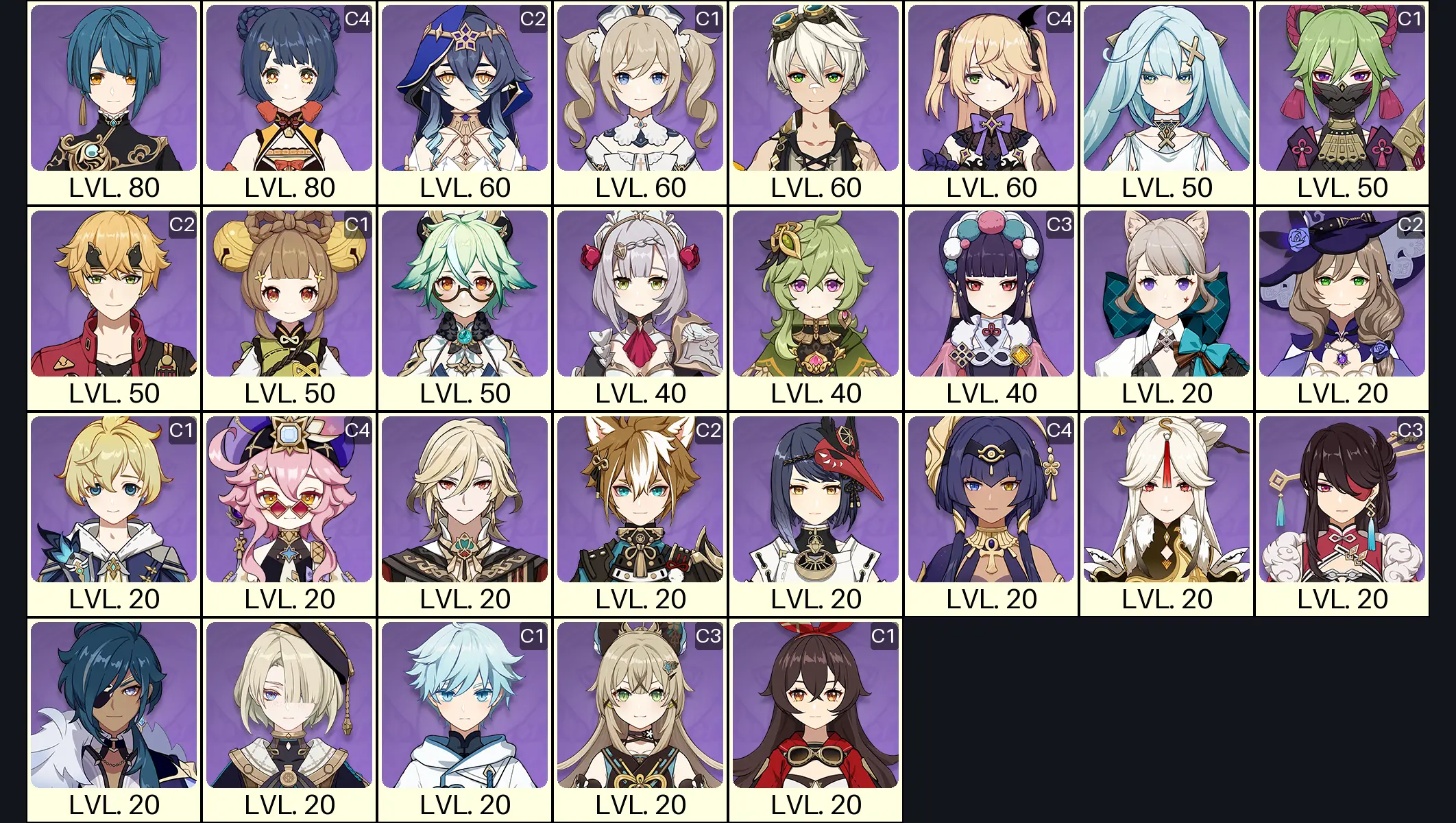 π[Europe] AR 55 π 8x Five Stars π 37 Chars π Hu Tao & Wanderer & Nahida & Cyno & Wriothesley & Ayato & Tighnari π