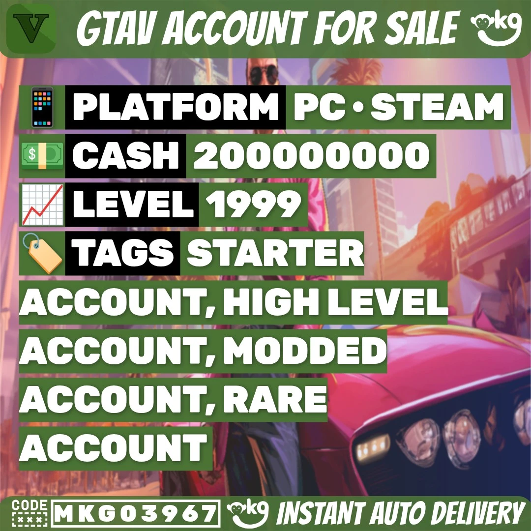 ๐ฎ GTAV ๐ป PC Steam (Enhanced) ๐ฆ 200 Million ๐ 1999 Level ๐ All Unlocks โ