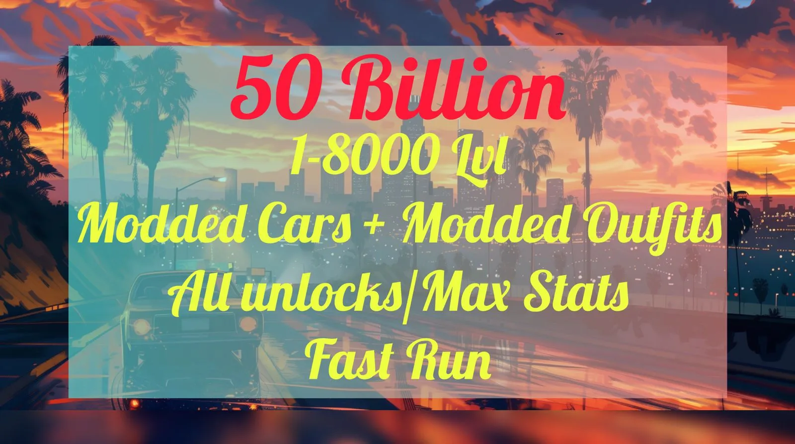 🚀【ENHANCED ⸱ ROCKSTAR】🤑 50 BILLION CASH 🚗 20 Modded Cars 👕 20 Modded Outfits 🌐 RP level:5000 ✨ Fast RUN 🔥 MAX Stats ✅ ALL Unlocked 🎉 Instant Delivery
