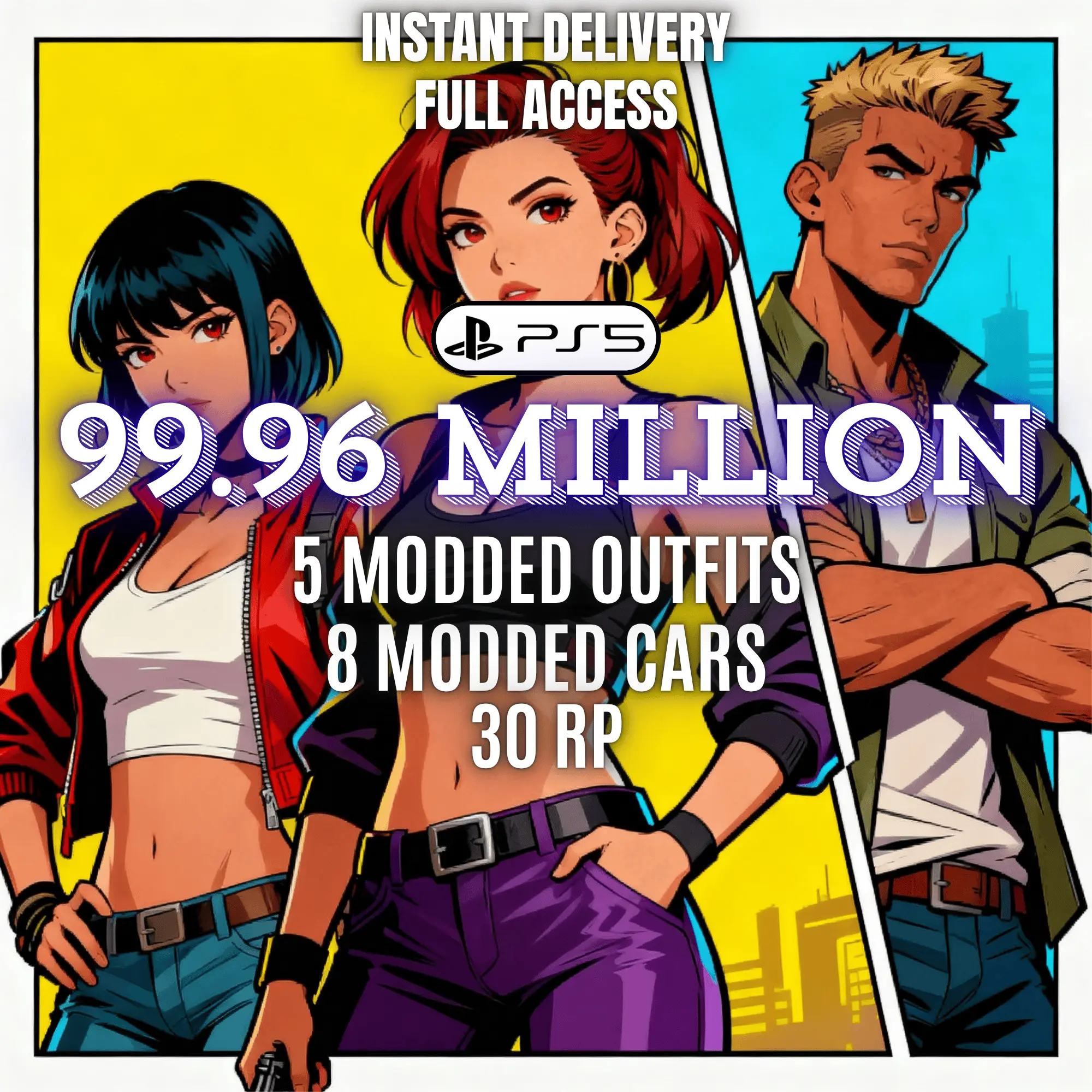 PS5 Modded Account ☆ $99.96 Million (Cash + Cars) ☆ 5 Modded Outfits ☆ 8 Modded Cars ☆ 30 RP ☆ Rapid Delivery | QAM77