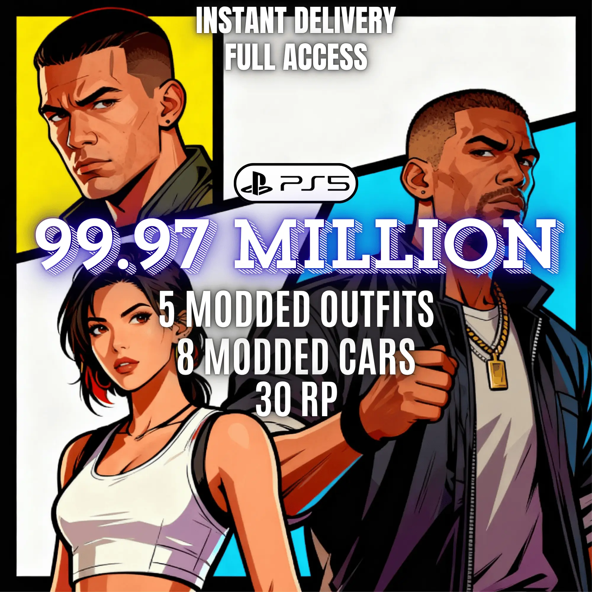 PS5 Modded Account ★ $99.97 Million (Cash + Cars) ★ 5 Modded Outfits ★ 8 Modded Cars ★ RP Rank 30 ★ Instant Delivery | QAM75