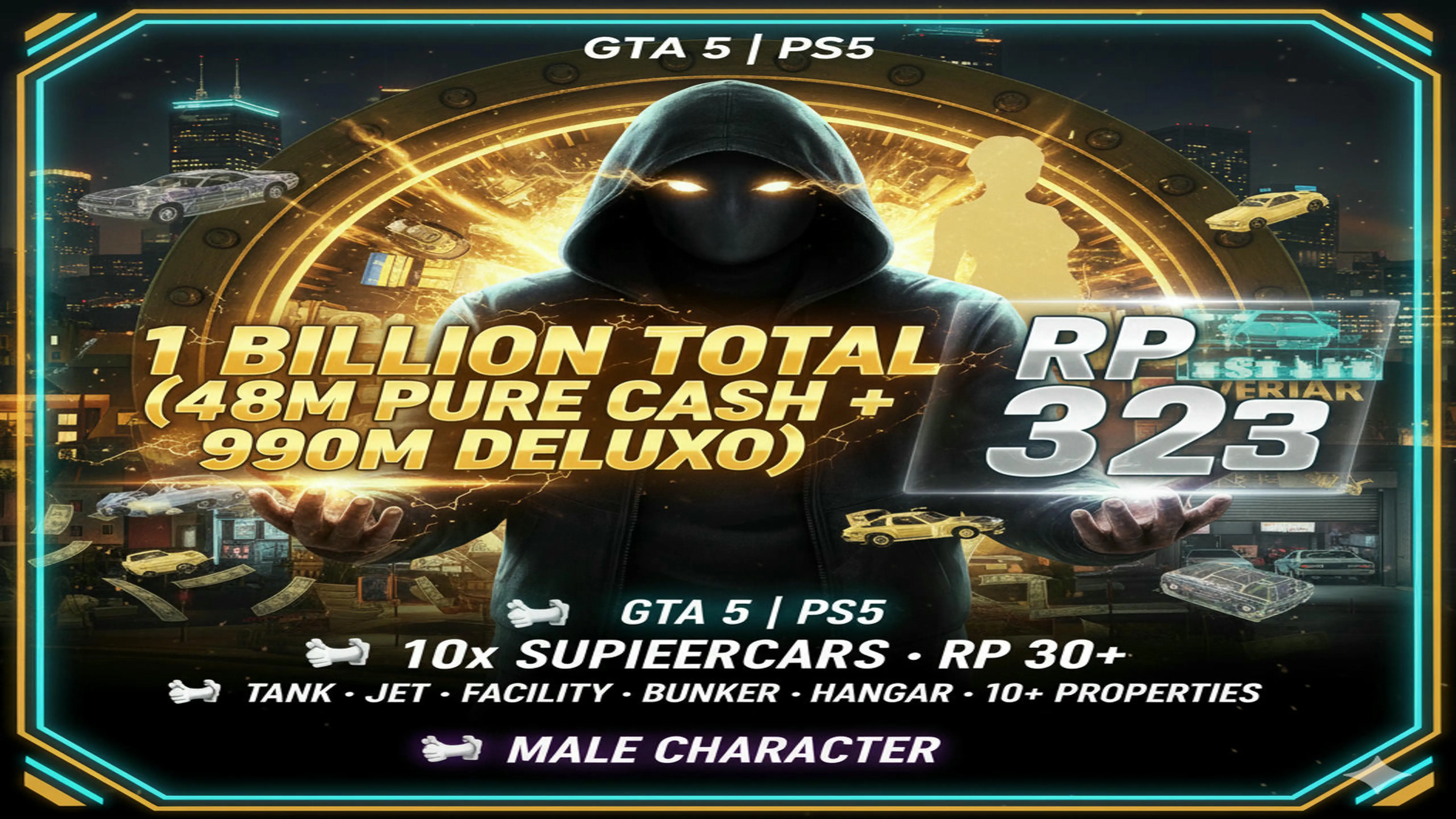 🩰 Trusty 🩰 GTA 5 | PS5 🩰 1 Billion Total ( 48 Million Pure Cash + 990 Million Worth Deluxo ) 🩰 10x Supercars 🩰 RP 32 🩰 Tank 🩰 Jet 🩰 Facility 🩰 Bunker 🩰 Hangar 🩰 10+ Properties 💮 Male + Female Dual Character 🩰 #cKwrBE