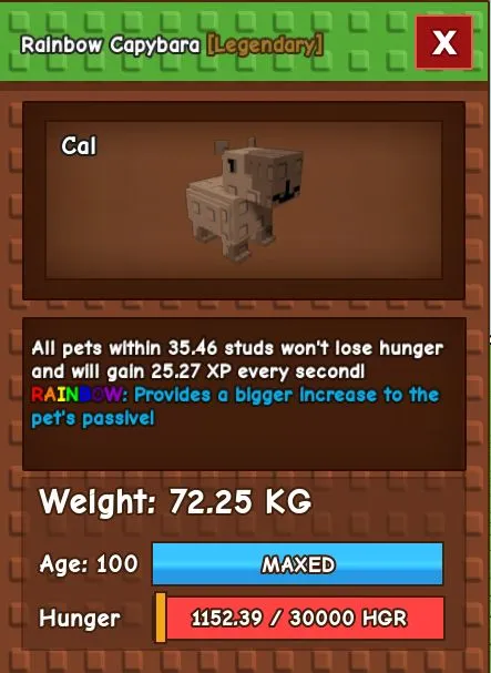 Acquista ora Huge Rainbow Capybara (All 50-70 kg) / OG XP FARM – GROW A GARDEN