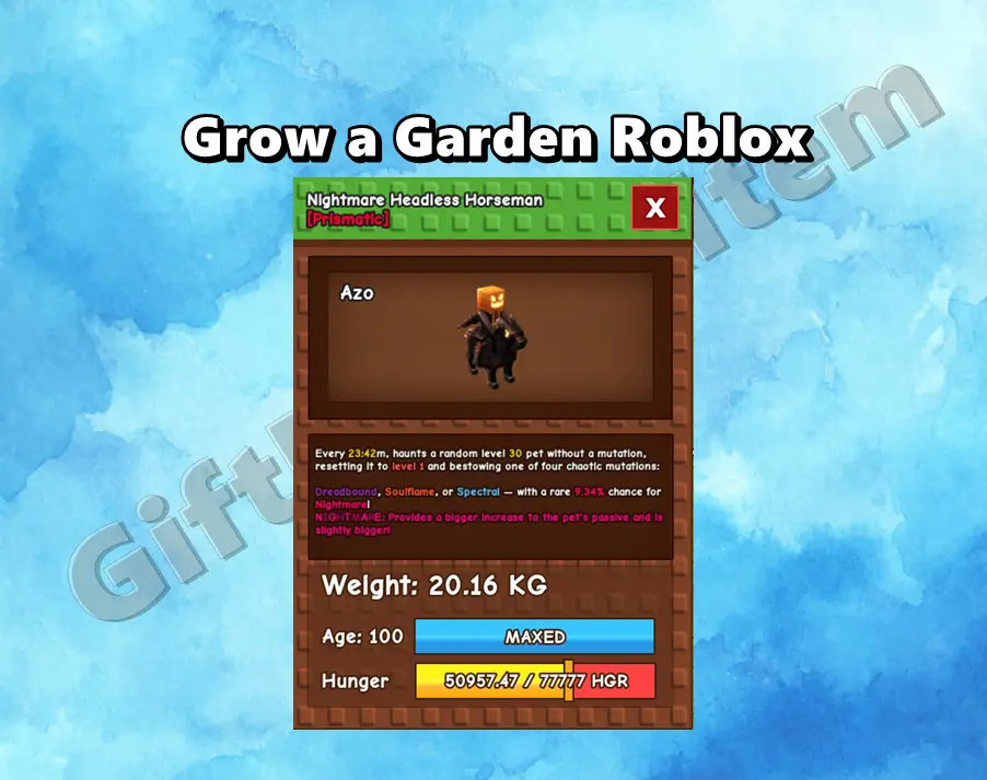 Acquista ora Mutation Nightmare Headless Horseman 20Kg ++ Age 100 Grow a Garden