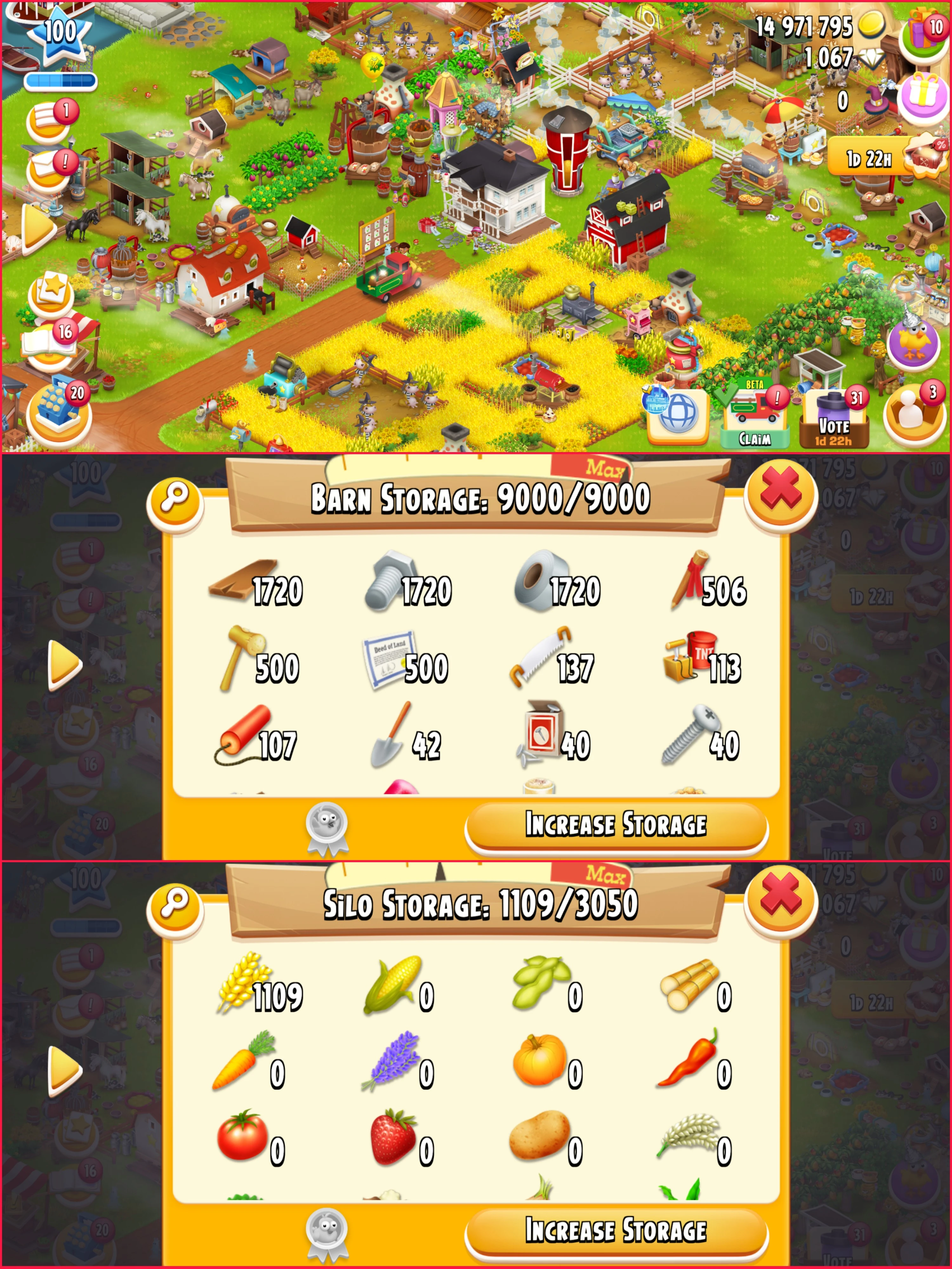 LEVEL 100 ๐พ 9000 BARN & 3000 SILO FULLY FILLED BARN ๐ฎ 14M+ COINS ๐ฐ & 1067 DIAMONDS ๐ LAND & BEM TOOLS INCLUDED ๐งบ FULL ACCESS ๐ INSTANT DELIVERY โก