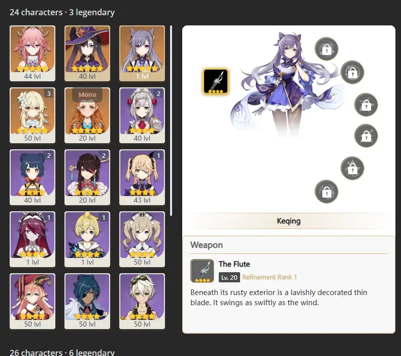 ๐NA Server | Honkai+Genshin | Honkai-๐ฏTL 44 ๐ 26 Characters 6 Legendaries | Genshin-๐ฏAE 31 ๐ 24 Characters 3 Legendaries .