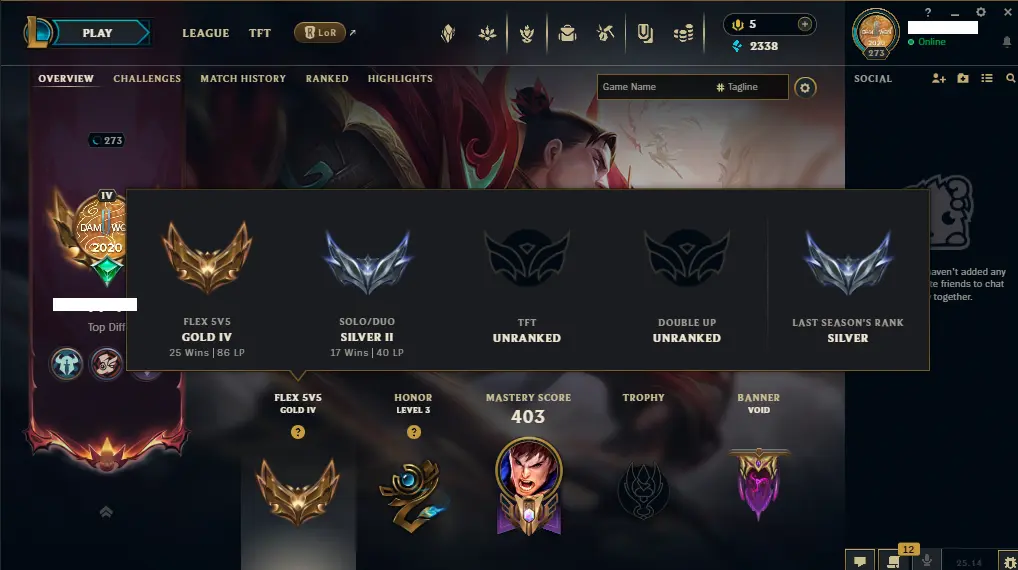 🏆 EUNE New Season⌛ Silver 2 🚀 level 273⌛166 Champ +113 (Loot 44) SKIN 🏆 Recovery Info ✅