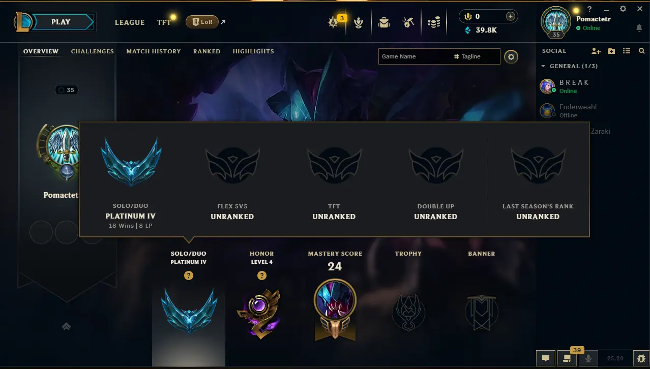 👌 EUNE ✨platinum 🪙New Season ✈️ +35k BLUE 🔥 +20 champ🔥3+ Skins 🔥plat 4
