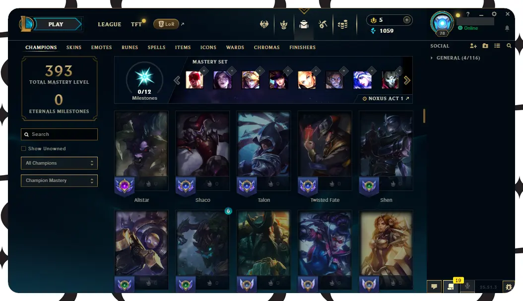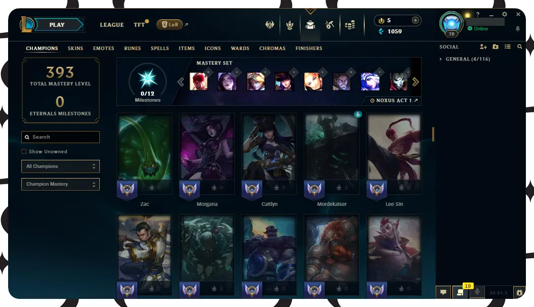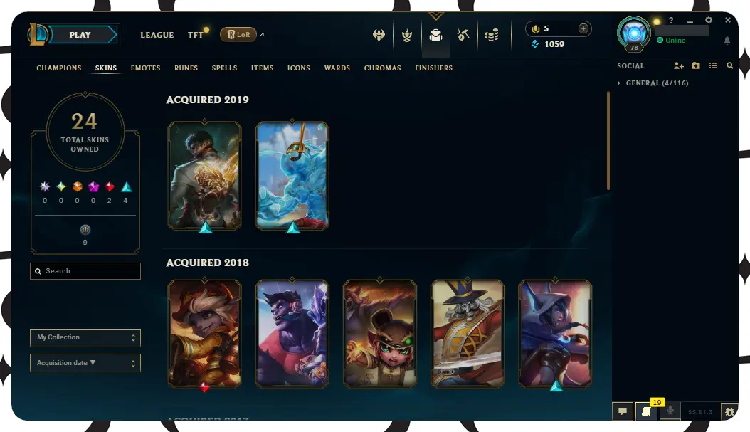 【EUW】116 Champions | ✅ Level 78 | 🤩 24 Skins | 🔵 1059 BE | 🎁 17 Chests ⸱ EUW league of legends account for sale