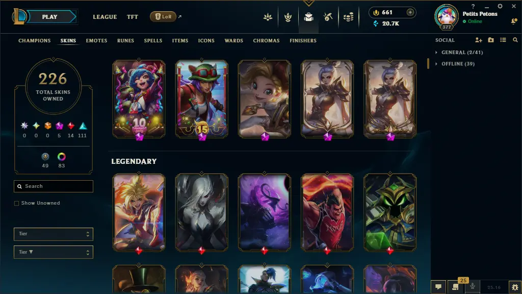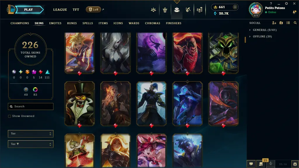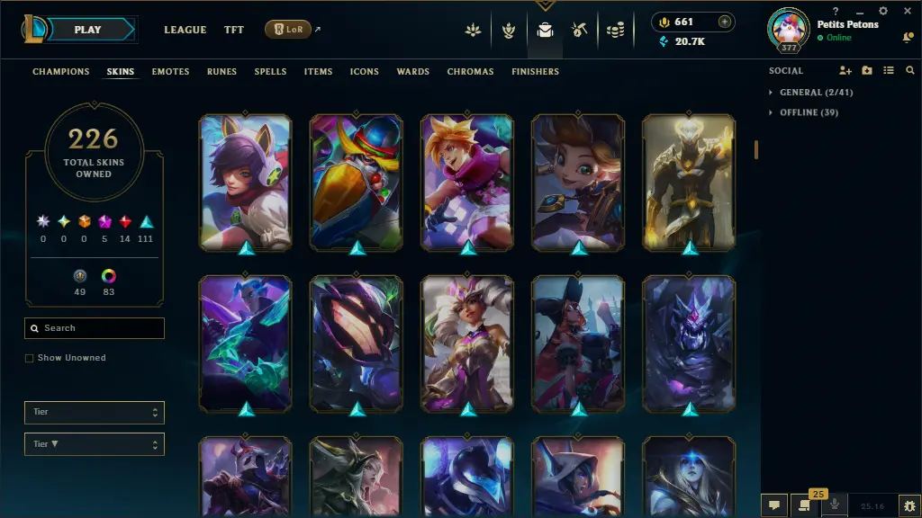 (Bronze 4 Flex โ๏ธ โ Gold 1 Last Season ๐ฅ) โ 226 Skins ๐จ [20,771 BE ๐ | 661 RP ๐ฅ | 70 M.Ess ๐ฆ] โ Honor 4 ๐ โ Full Champsโ๏ธ