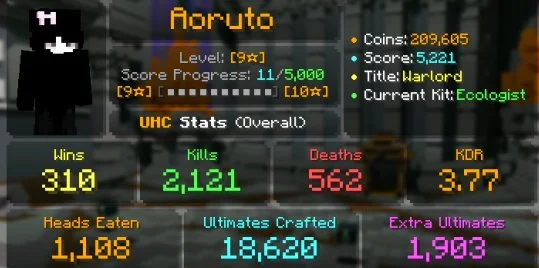MC18 // 💎MVP+💎250 LVL HYPIXEL💎274 BW STAR💎9 UHC STAR💎