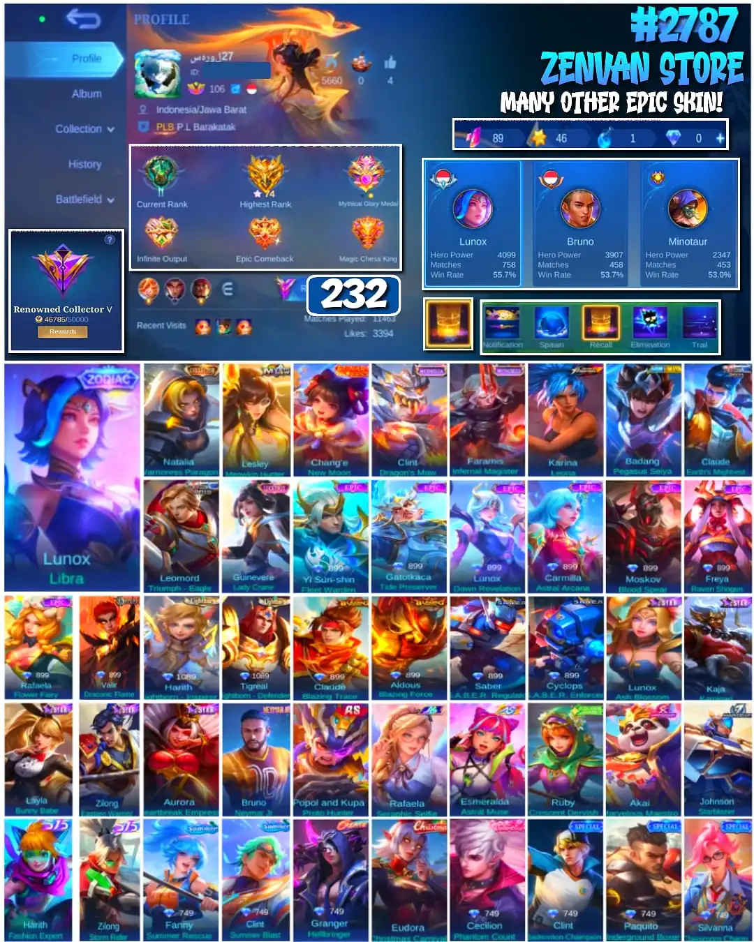 #2787 ๐ฅ 232 Skins ๐ฅ Collector Natalia ๐ฅ Seint Seiya Badang ๐ฅ KoF Karina ๐ฅ Many Epic ๐ฅ Safe Account โ