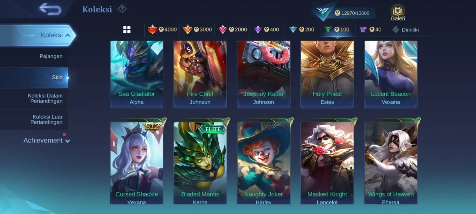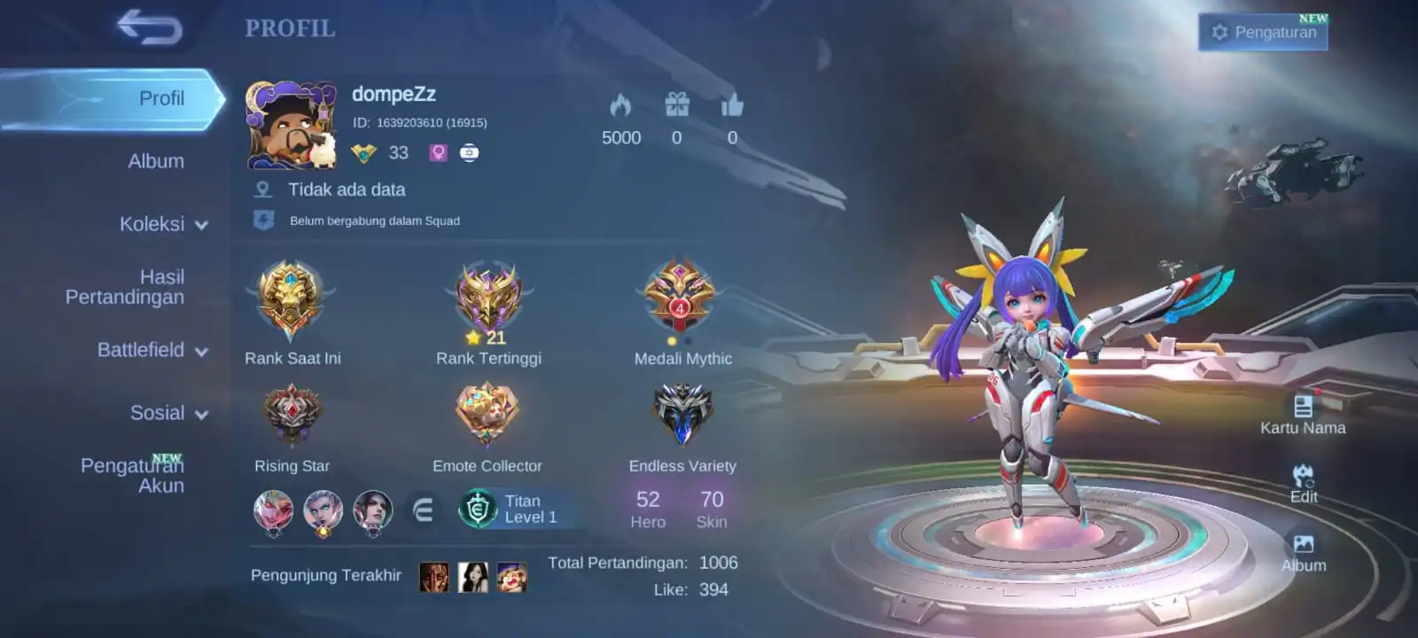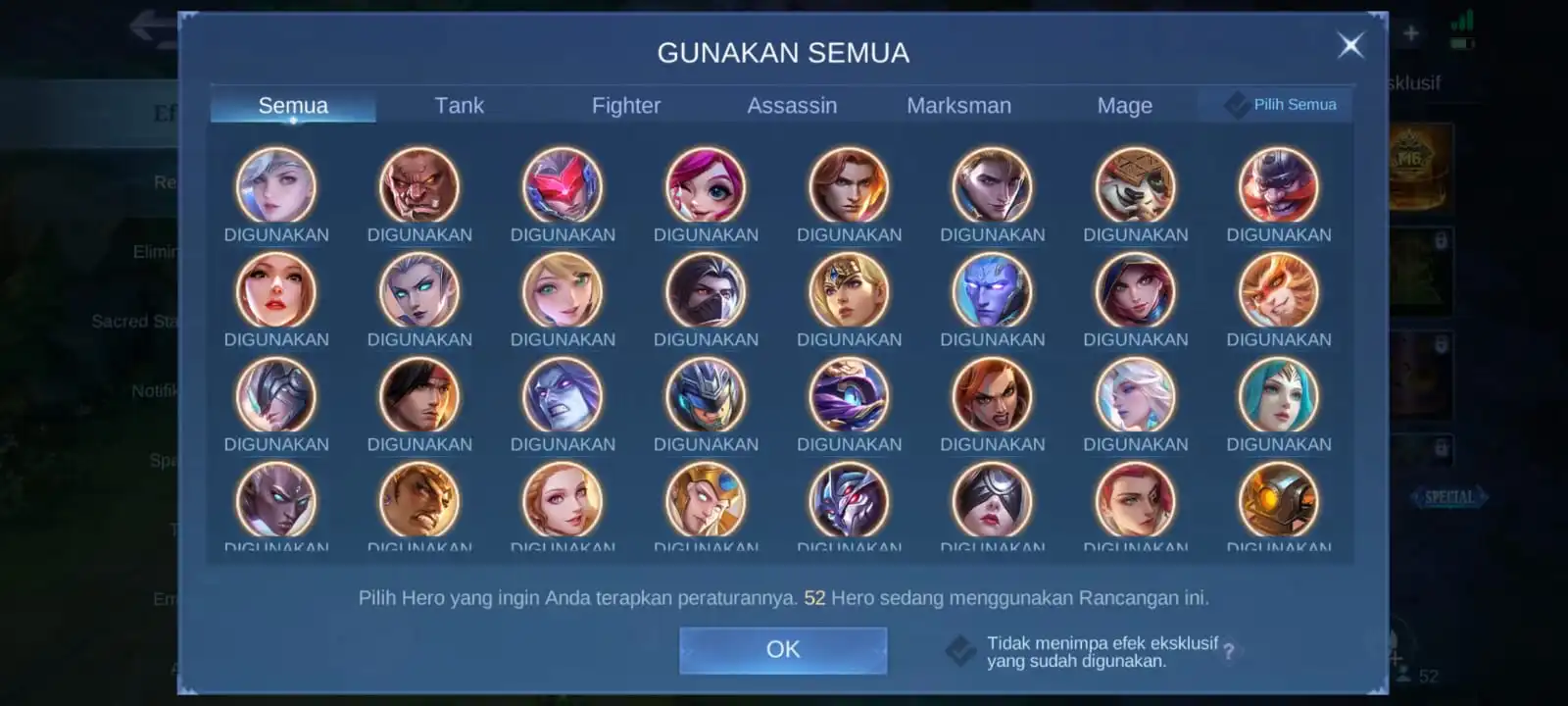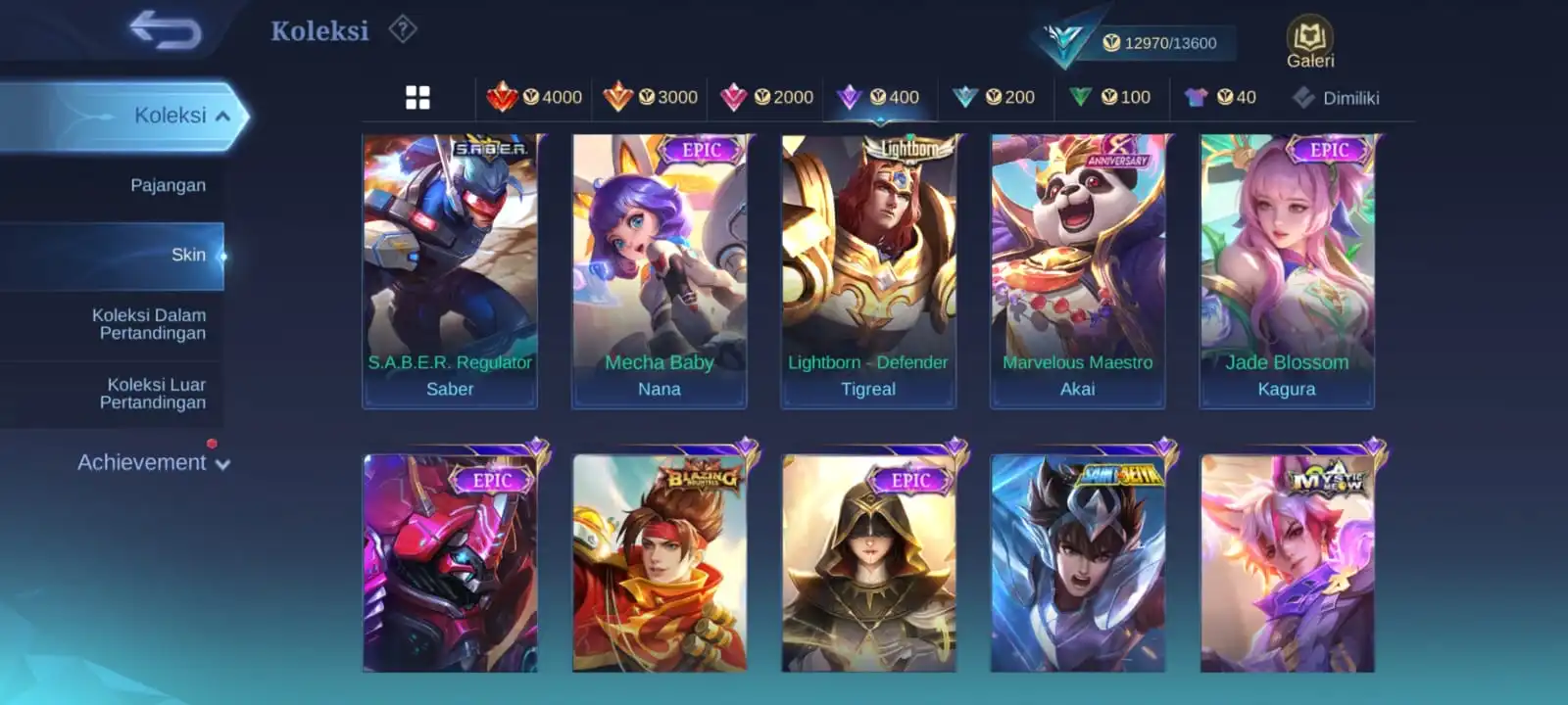 BEST MEGA DEAL✨HERO 52✨SKIN 70✨EMBLEM max 1 ✨NANA MECHA BABY✨CLAUDE BLAZING TRACE✨TIGREAL LIGBORN✨GROCK CODENAME ✨KAGURA JADE BLOSSOM✨JULIAN MEOWKIN TRACKER✨BADANG PEGASUS SEIYA✨EPIC 10✨SPECIAL 9✨ELITE 49✨SAFE ACC✨INSTAN DELIVERY (GMB)
