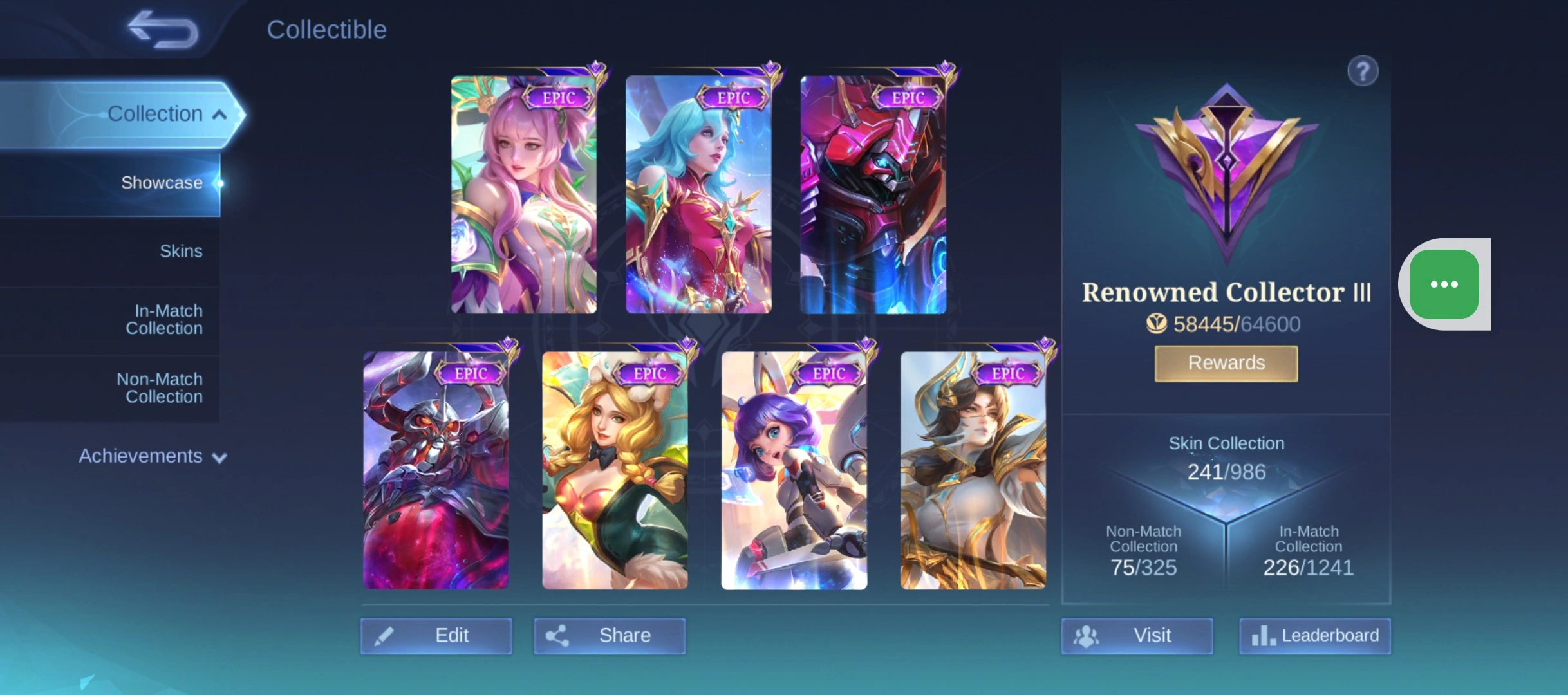 C182|LV 85|129 HERO|241 SKIN|ALL EMBLEM MAX|KARINA KOF|ROGER TRANSFORMERS|2 COLLECTOR|12 EPIC|5 BLAZING|6 SABER|3 DRAGON TAMER|3 VENOM|ODETTE CREATE|10 STARLIGHT