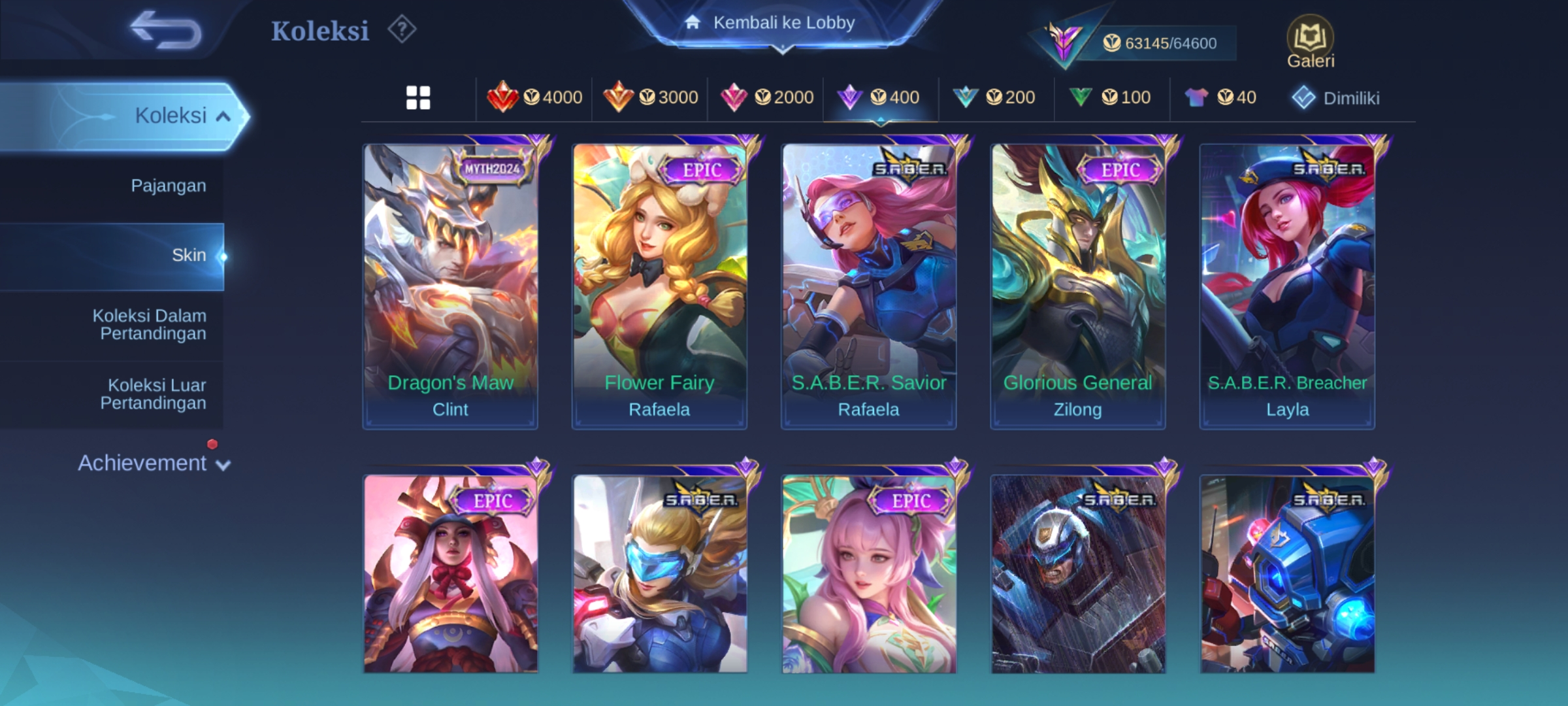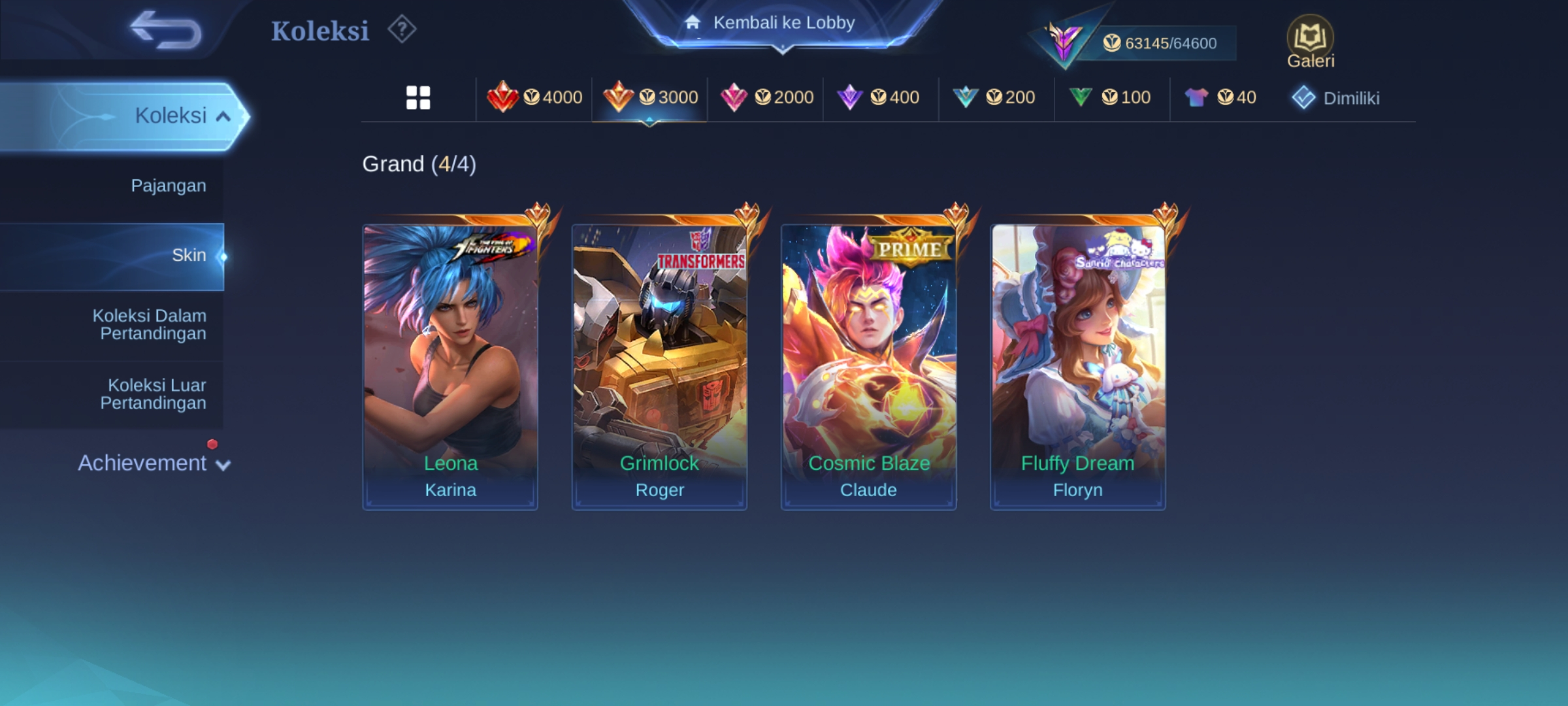 ML-142 Skins 241 [ Collector YSS ] Sanrio Floryn / Transformers Roger / Prime Claude / KOF Karina / Luckybox Martis / Zodiac Mar