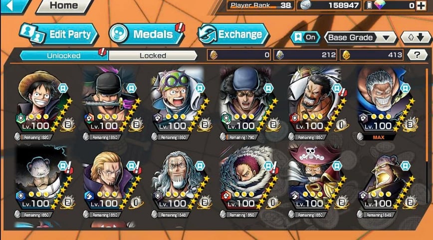 Avanzare in OPBR comporta sbloccare i personaggi tramite Rainbow Diamonds, grindare per le medaglie, costruire support tag e padroneggiare le meccaniche PvP. Sebbene il gameplay sia friendly per i giocatori free-to-play, raggiungere i Rank più alti o sbloccare unità EX può richiedere un serio investimento di tempo.