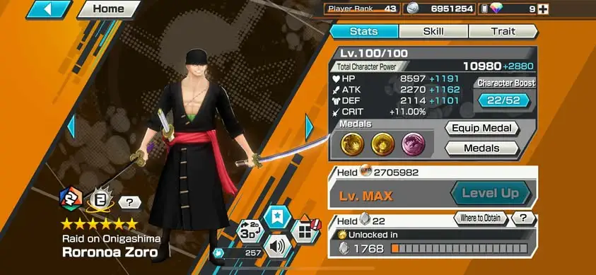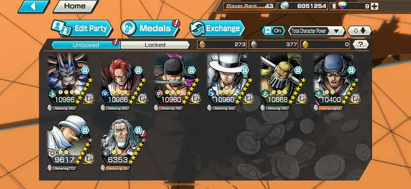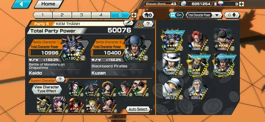 [3308][IOS+ANDROID] 5 EX / Lucci + Kaido + Shanks + Kuzan + Zoro , Support 152% , Good Medal