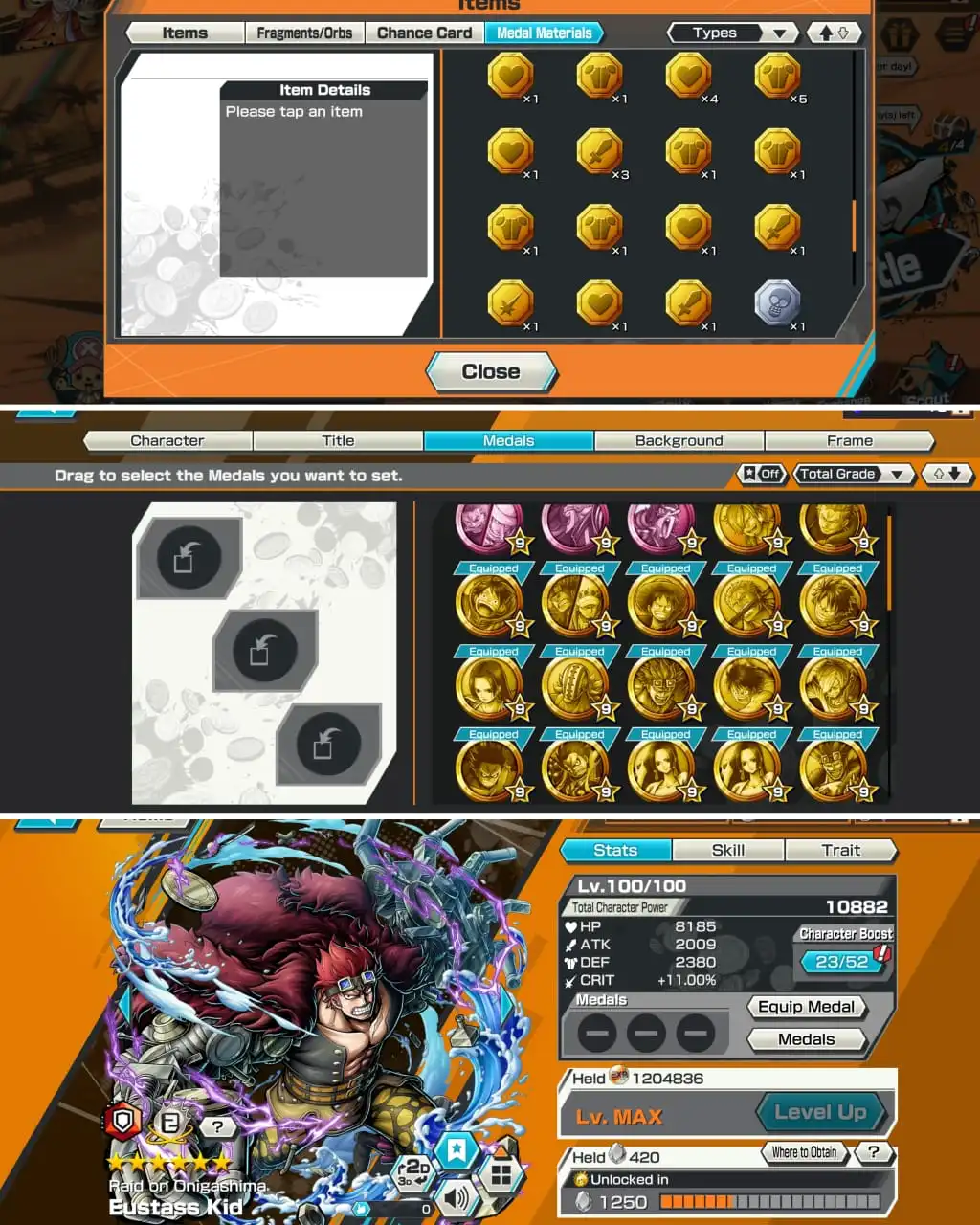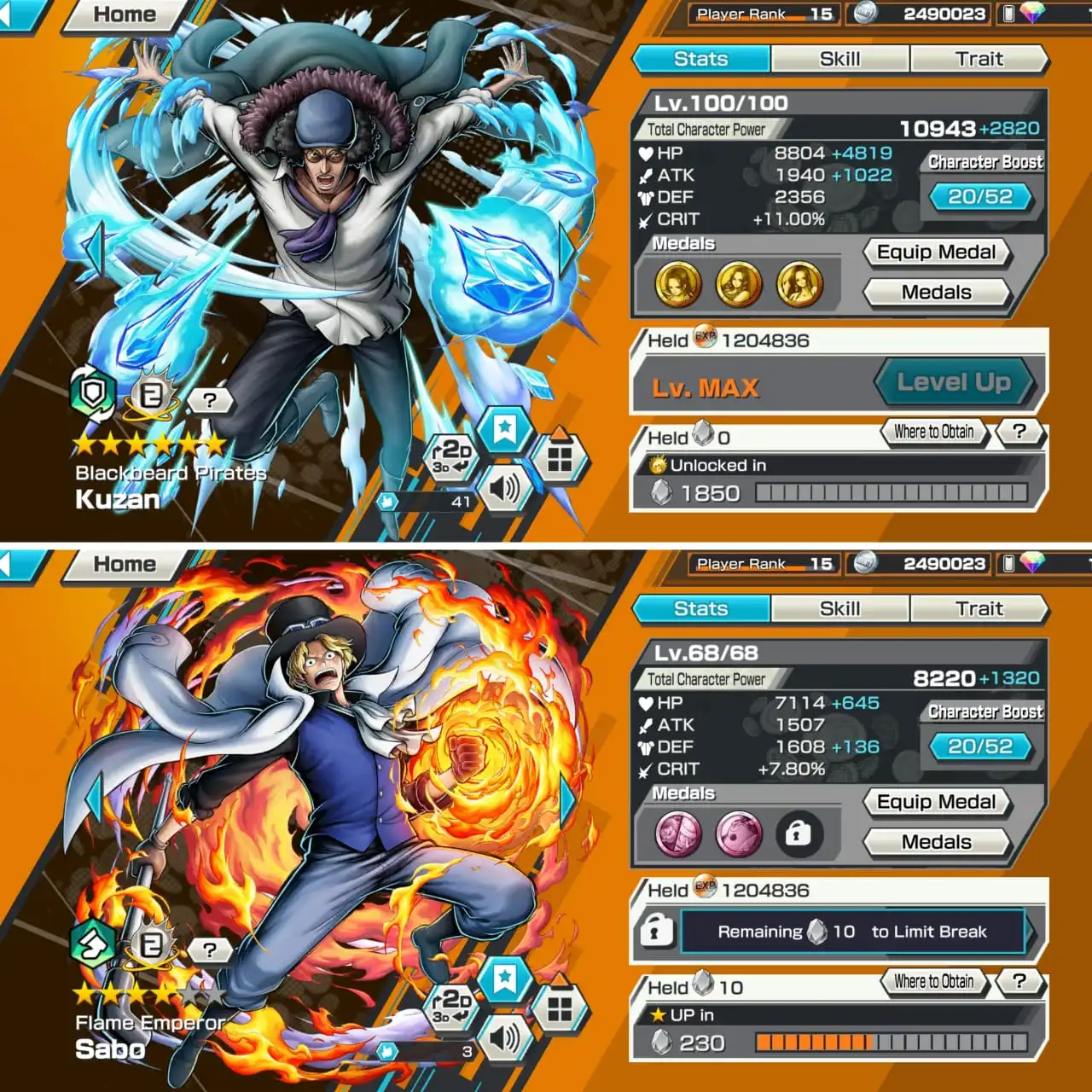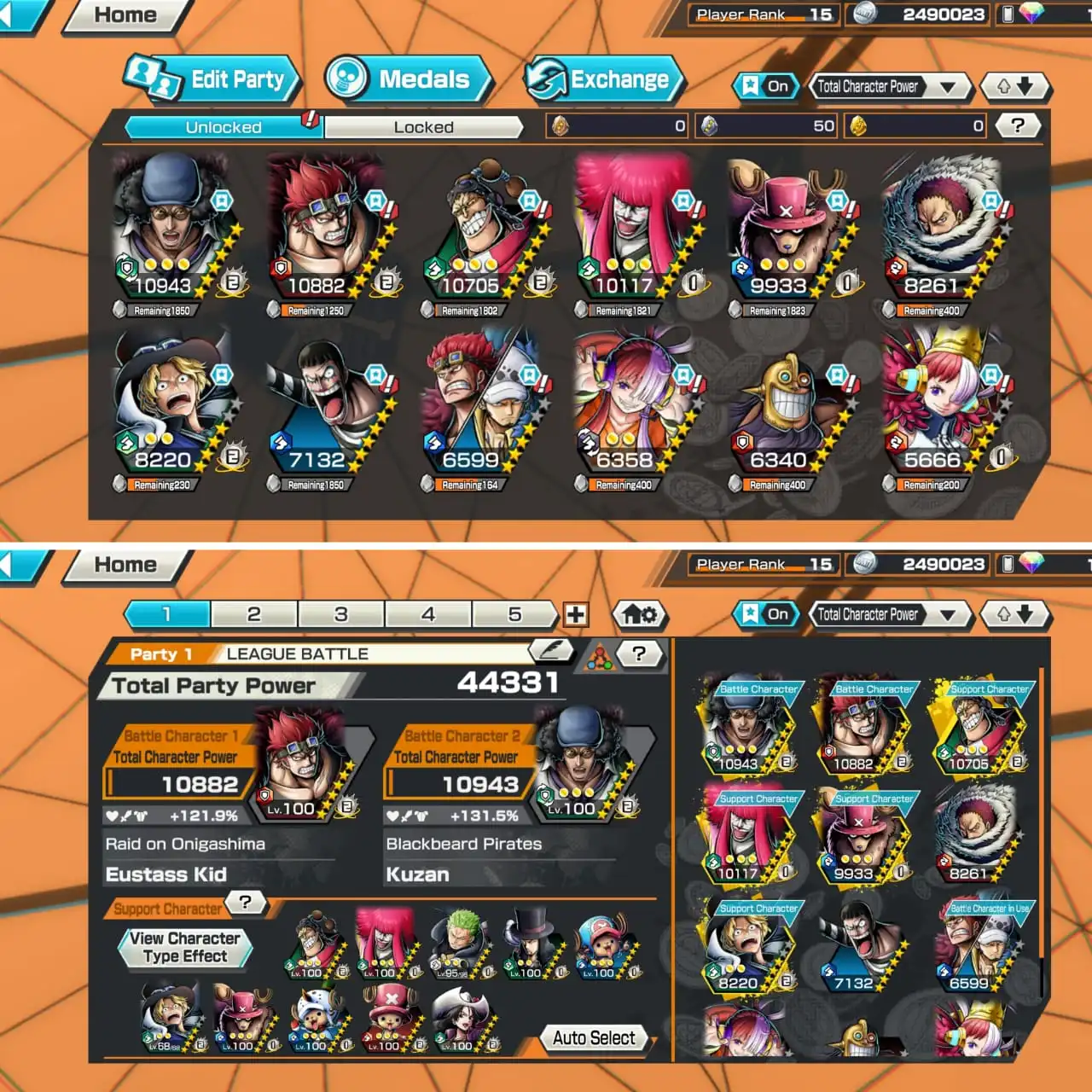 OP194✨2EX 1MAX✨KUZAN MAX✨SABO✨SUPPORT 121%✨EUSTAS MAX✨GOOD MEDALS✨MANY CHARACTER✨ANDROID/IOS