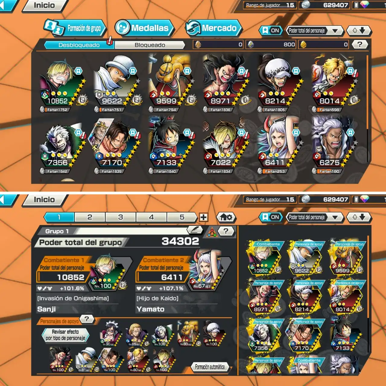 OP203✨1EXTREME✨YAMATO LEV 67✨SUPPORT 101%✨SANJI+LAW+LUFFY GEAR4 MAX✨GOOD MEDALS✨MANY CHARACTER✨ANDROID/IOS