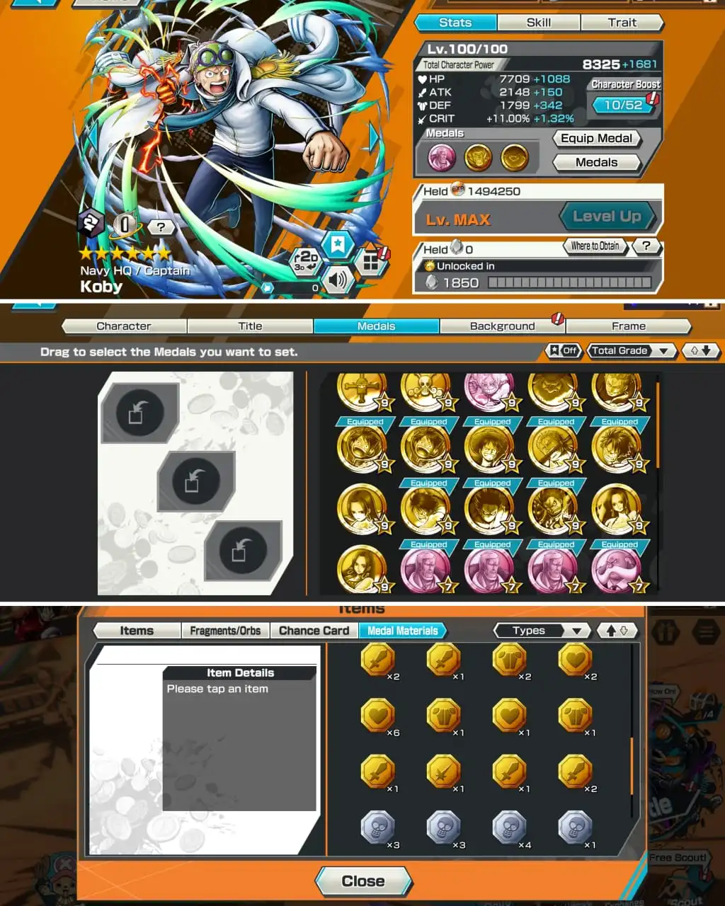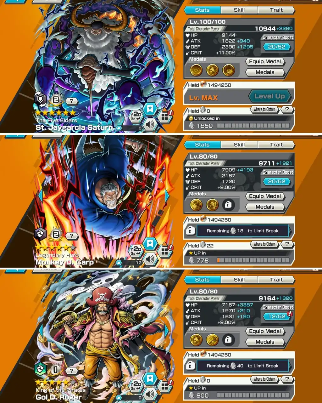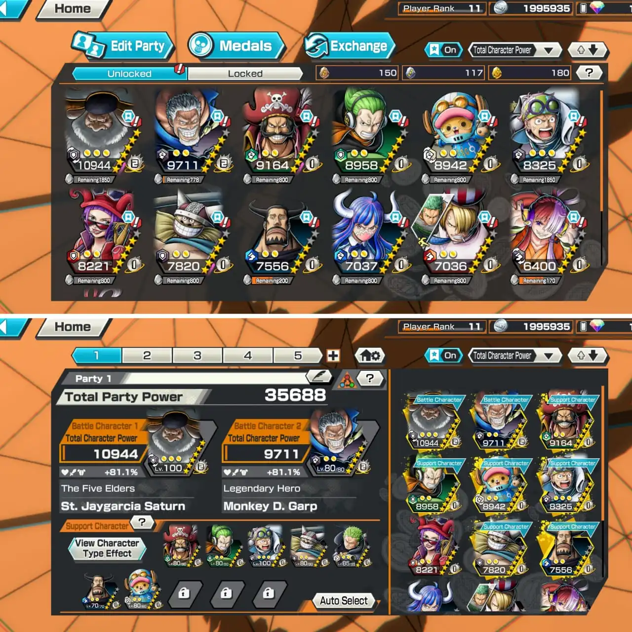 OP224✨3EX 1MAX✨SATURN MAX✨GARP✨ROGER✨KOBY MAX✨SUPPORT 81%✨GOOD MEDALS✨MANY CHARACTER✨ANDROID/IOS