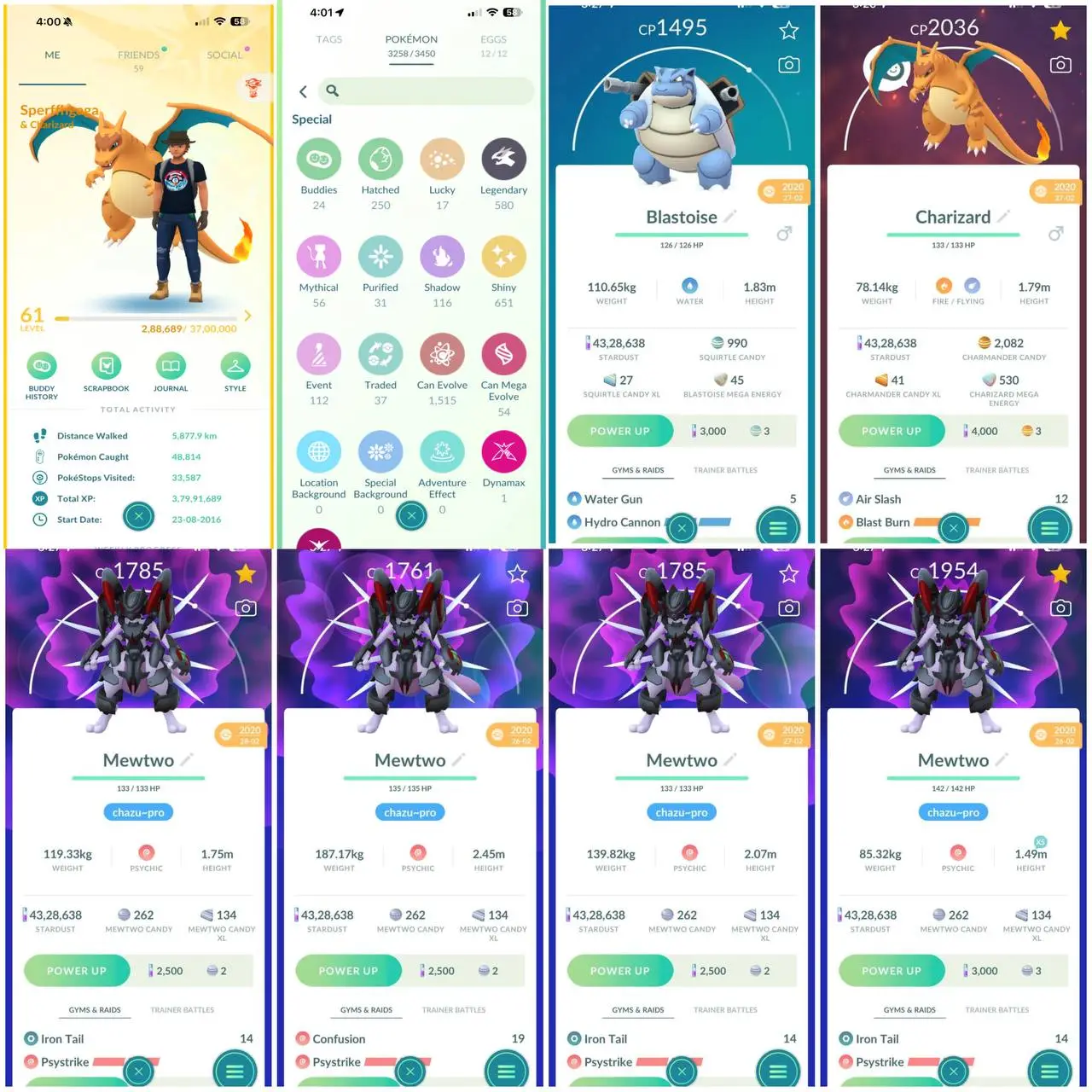 ❄️GOLDEN DEAL(LVL61)(2016)⭐580 LEGEND✨651 SHINY(33 SL’s)👑4x ARMOURED MEWTWO(TRADABLE)🌟SHINY ASH HAT PIKACHU🤩2xCLONE CHARIZARD+VENUSAUR+BLASTOISE🔥 519 HUNDOS(72 SHUNDO)🤯11 SHINY MEGAS🎭3 SHADOW SHINY😇1800+ ITEM💰1500+COINS+8 RAID PASS🧳MORE IN DESC ⬇️