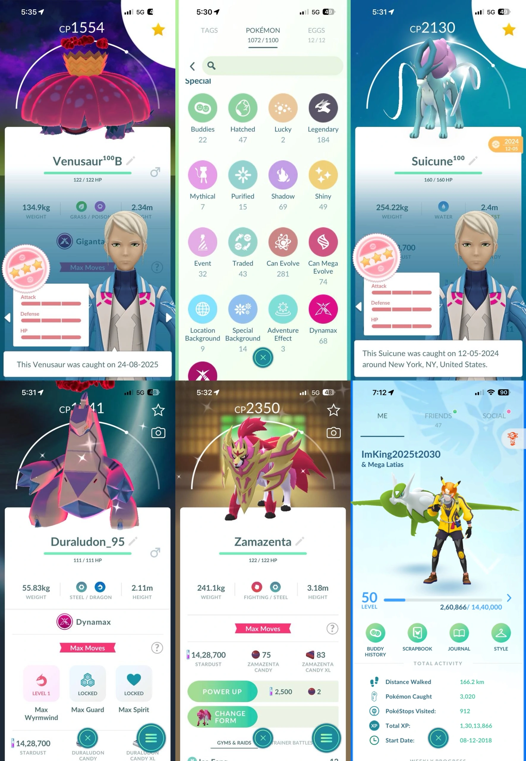 ⚜️INSANE DEAL (LVL50)⭐ STACKED 2018 ACC✨184 LEGENDARY👑 49 SHINY 🎉SHINY CROWN ZAMAZENTA🌟SHINY DMAX DURALUDON🌟HUNDO REGIGIGAS, SUICUNE, GENGAR💎55 HUNDOS🎭EVENT HAT PIKACHU🌌RARE ETERNATUS🎊22 GMAX⚡️68 DMAX🔥74 MEGA READY💥1.4M+ STARDUST🚀SAFE✅