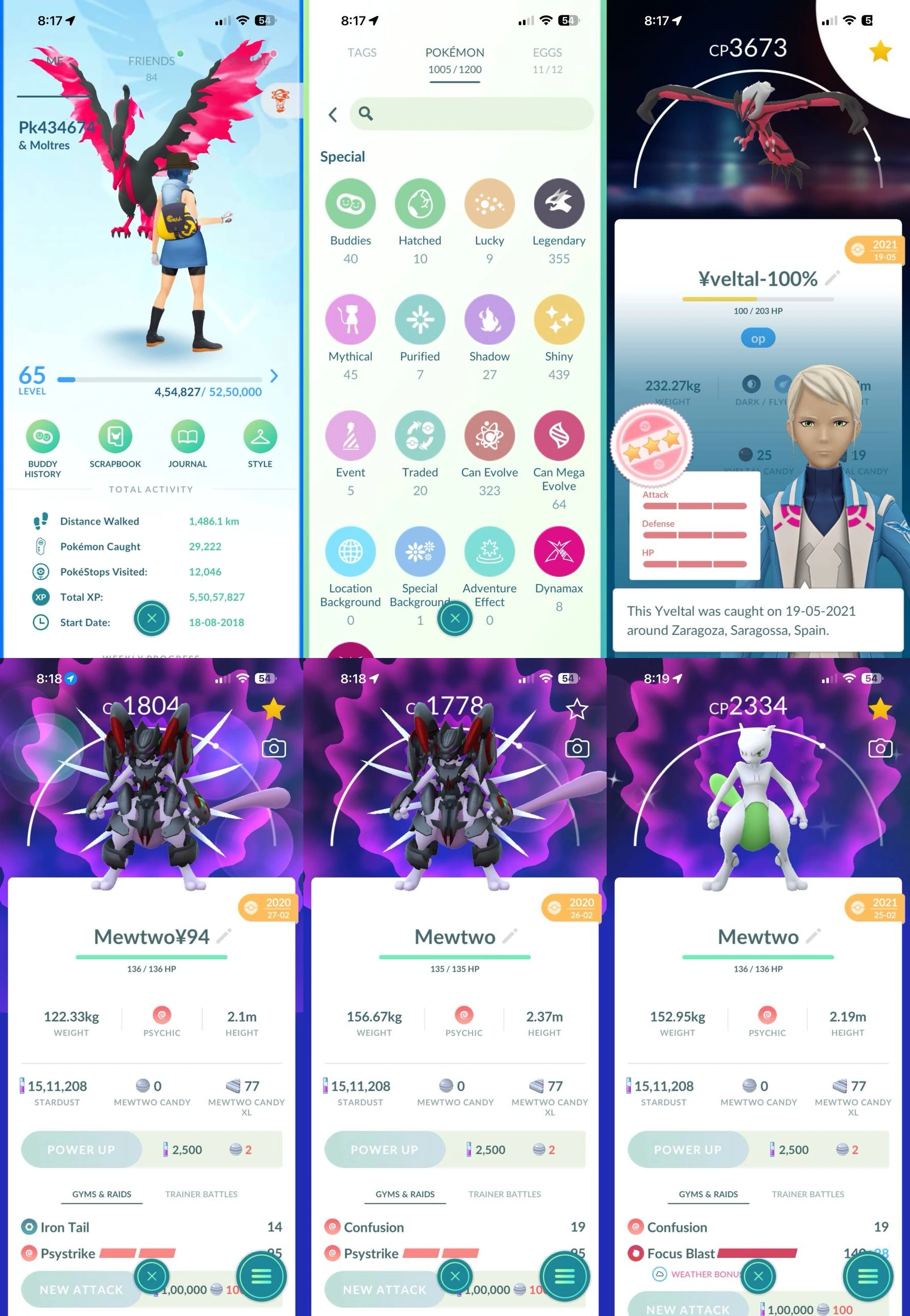 MEGA DEAL(LVL65)⭐STACKED 2018 ACC✨355 LEGENDARY👑439 SHINY(26SL)💎ARMOURED MEWTWO×2🔥SHINY MEWTWO,RESHIRAM,HO-OH🌟 HUNDO YVELTAL⚡MEGA TYRANITAR&GARCHOMP💥64 MEGA READY🚀27 SHADOW💀101 HUNDOS💎1.5M+ STARDUST✅SAFE & LEGIT✅