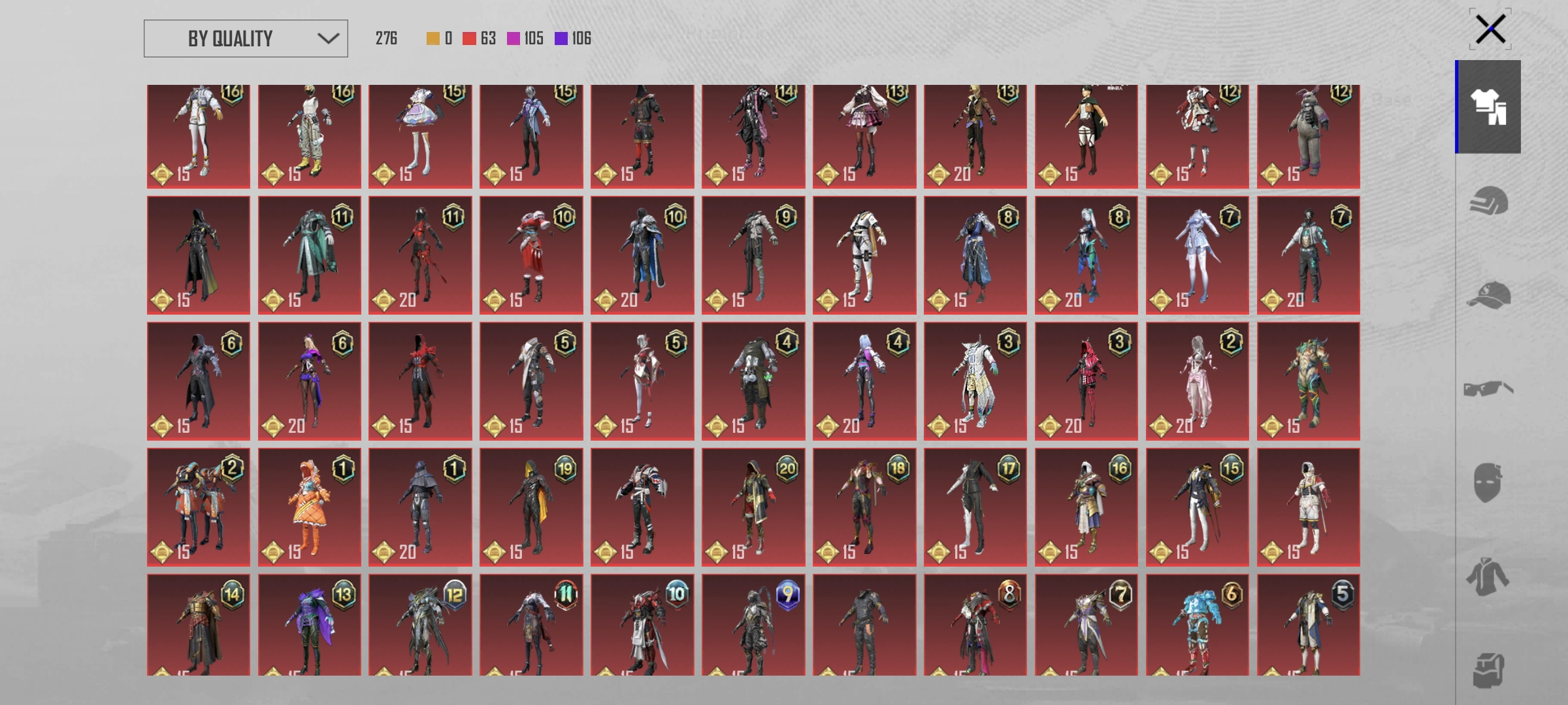 Global Account Lv.78( high) | Collection level 61 | 23 gun lab (11 kill massage) | 103 mythic fashion | 28 Vehicles skins