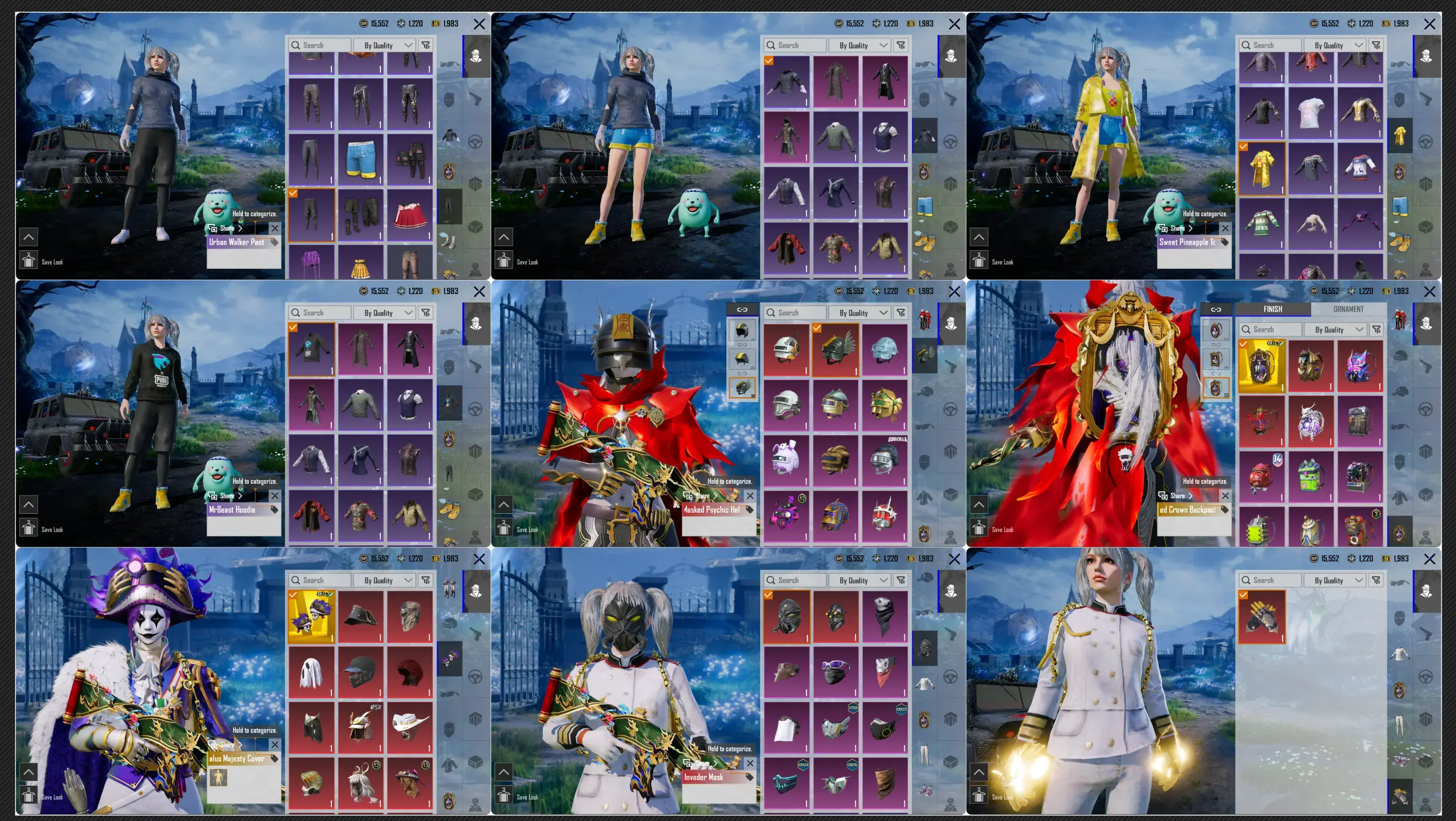 ๐ก Rare Quicksand Gloves ๐งค ๐บ 2x Mummy Sets ๐ 3x Ultimates ๐ซ 4x M416 (Glacier โ๏ธ Roaring ๐ฅ Sealed โก Crimson ๐ฅ) ๐ 41x GunLabs ๐ข 16 Kill Messages ๐ 3x X-Suits ๐งฅ White Commander + City Defender ๐ Pineapple Set ๐ Crew Uniform + Urban Walker ๐ ๐ S5 Pony