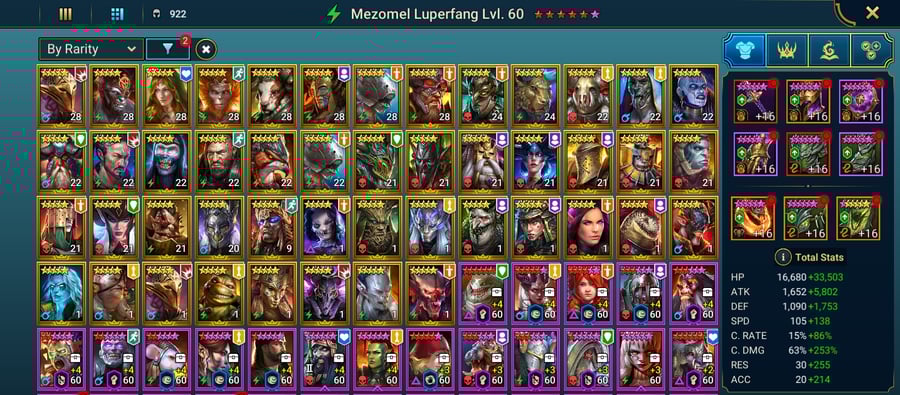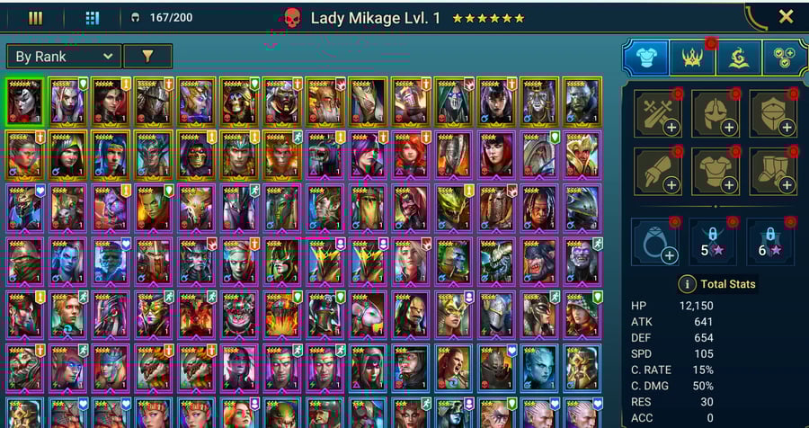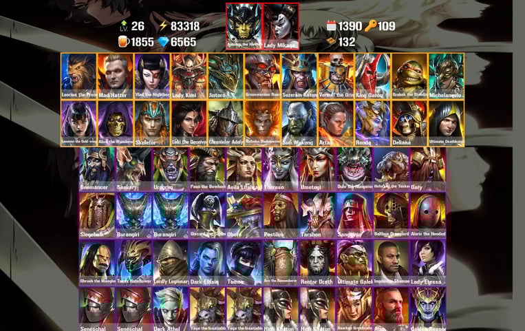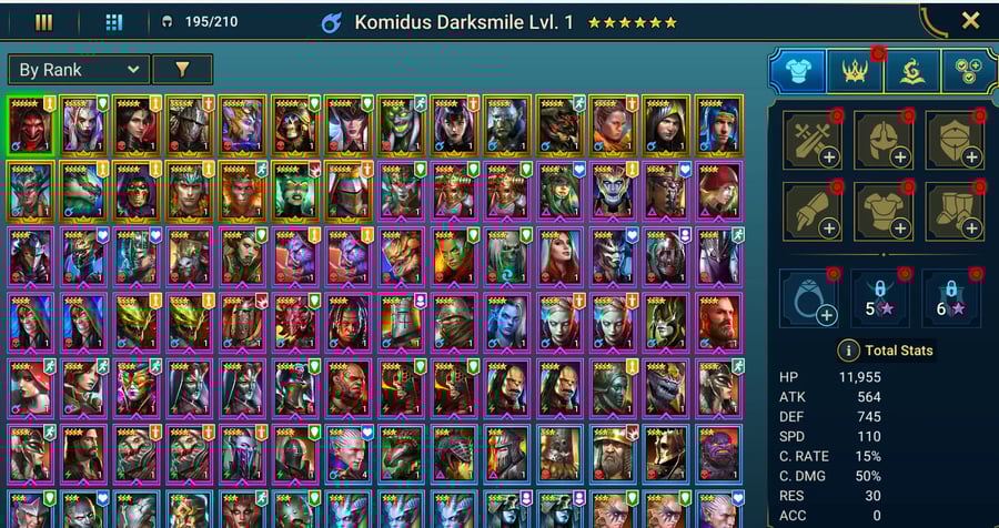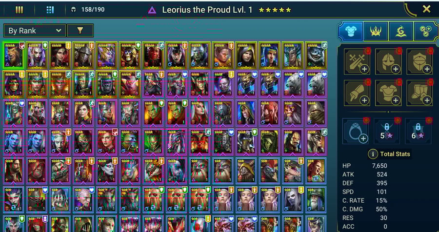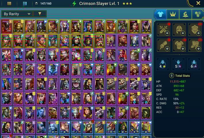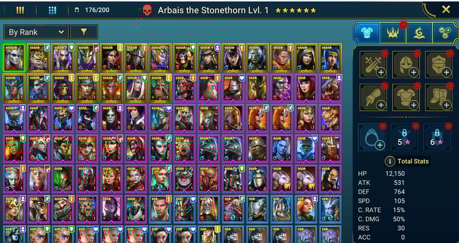 Un buon account di solito include più campioni di livello 60, preferibilmente eroi leggendari che sono utili in tutte le modalità di gioco, eroi come Arbiter, Kymar, Siphi, Krisk, o Warlord. Questi campioni offrono un prezioso controllo della folla, buff, e manipolazione del turn meter che non possono essere facilmente sostituiti.