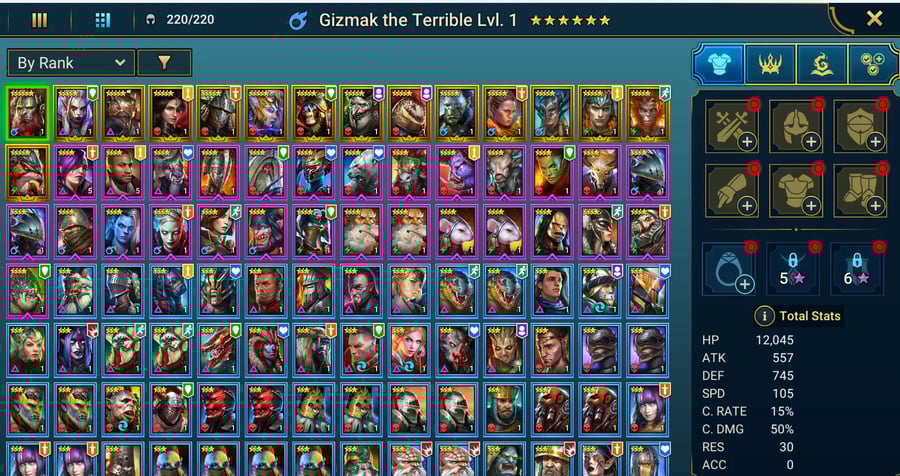 L'equipaggiamento è importante tanto quanto i campioni. Set completamente ottimizzati di Speed, Savage, Relentless o Immunity con le migliori substat possono fare una grande differenza nelle prestazioni. Un buon equipaggiamento risparmia mesi di farming e permette a un giocatore di entrare direttamente in contenuti impegnativi.