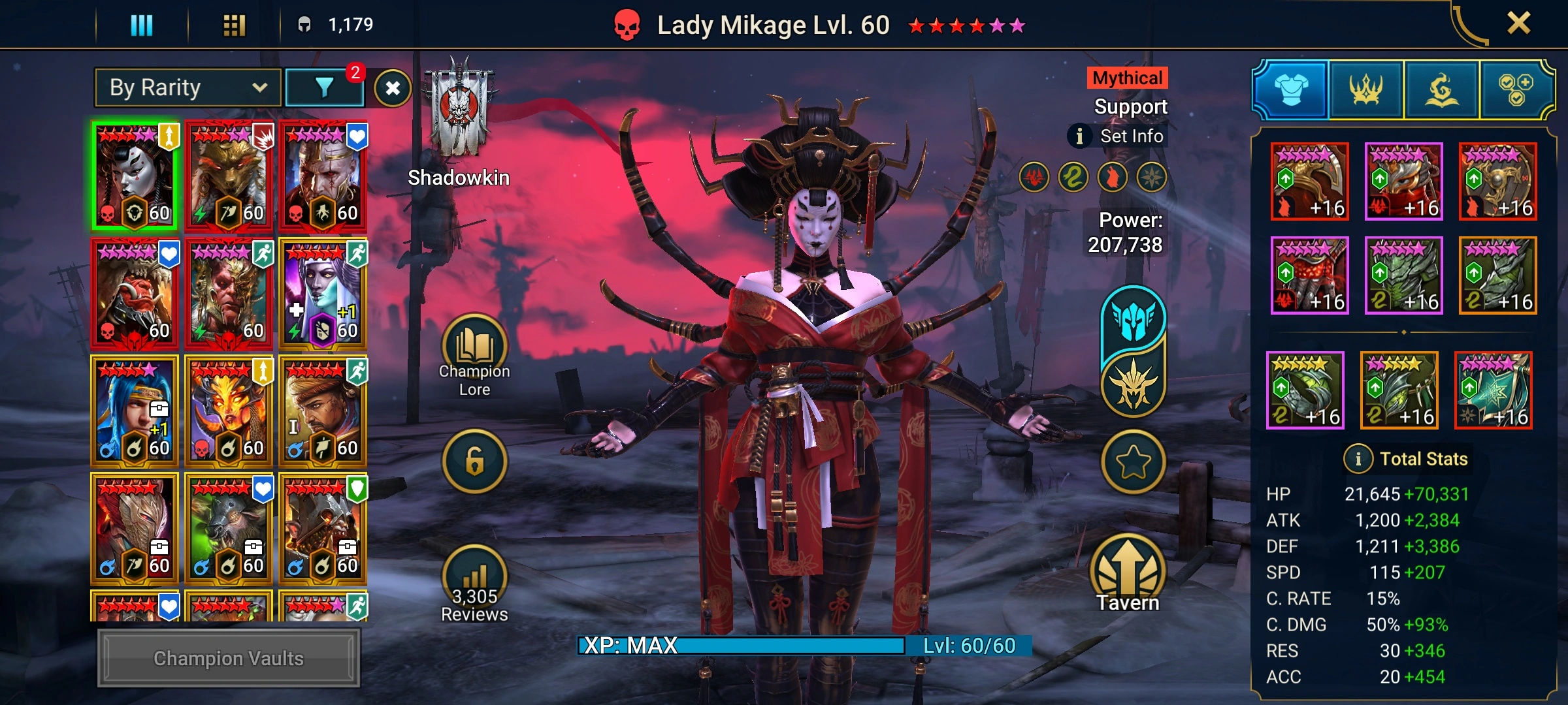 [5 Mythical Champions][22.96M] Lady Mikage,Ashnar,Mezomel,Embrys,Karnage + 204 LEGENDARY (Marius,Taras(5*)+Marichka(5*),Siphi(5*)+Rotos(5*)/x2,Acrizia+Gnut x2,Odin,Graazur,Arb 400,Nekhret,Chalco,Warlord,Leo(5*)...) + 1k UNM + 1k NM HYDRA + RTA AVATAR