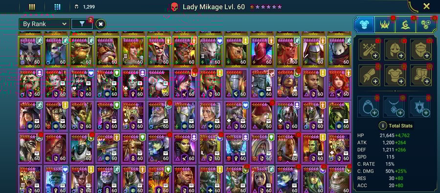 RK146 | 100 lvl account / 12,1M Power / 147 legendary , 4 mythic , 372 epic champions / 7,79M Silver / 4,9k Gems / 4,6k Energy