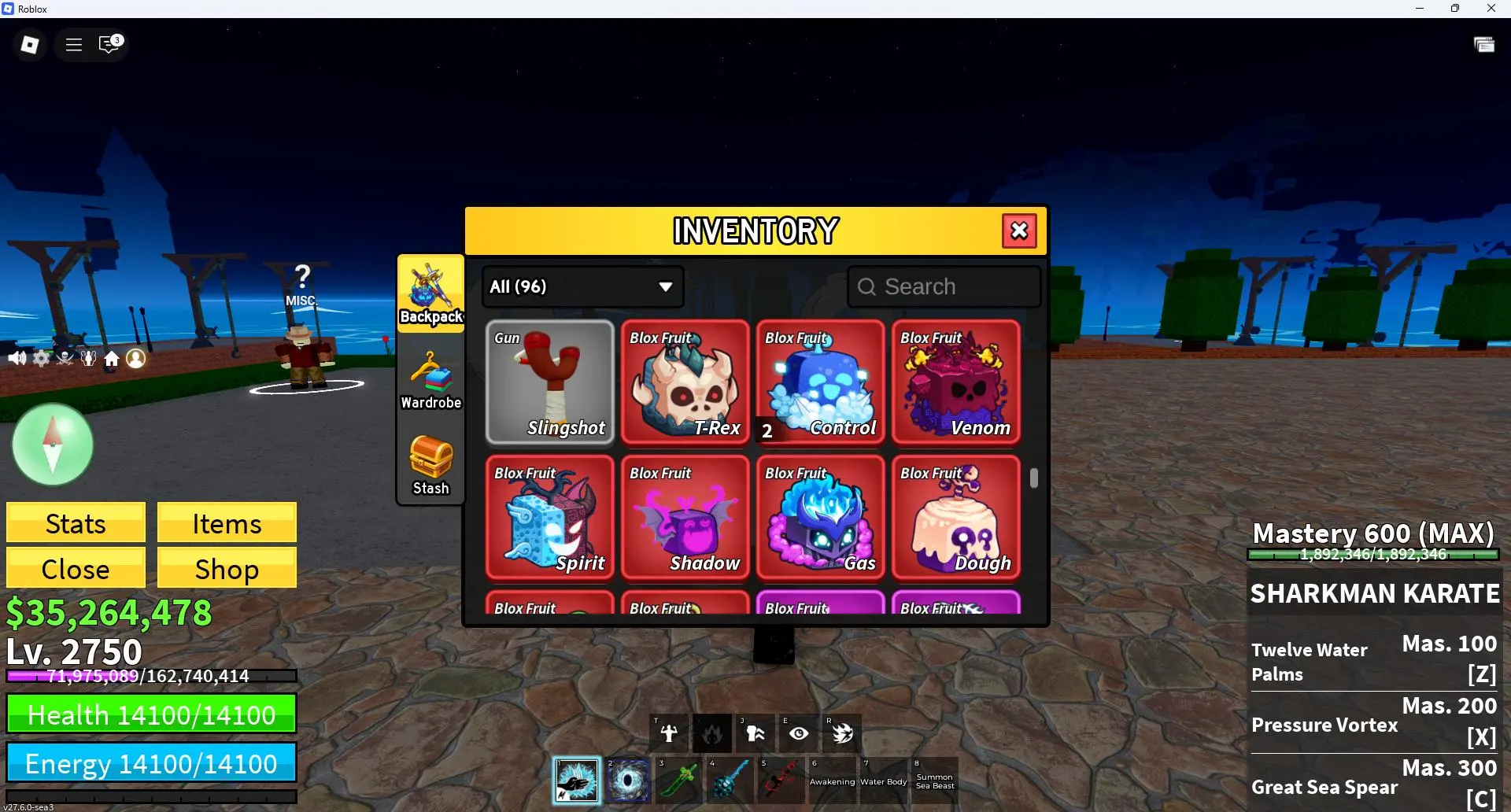 ❤️Blox Fruits ❤️ 2750 lvl ❤️ $35.2M ❤️ sharkman karate max ❤️ dark blade ❤️ fruits: mammoth ❤️ t-rex ❤️ leopard ❤️ dough ❤️ gas ❤️ sahdow ❤️ spirit ❤️ venom ❤️