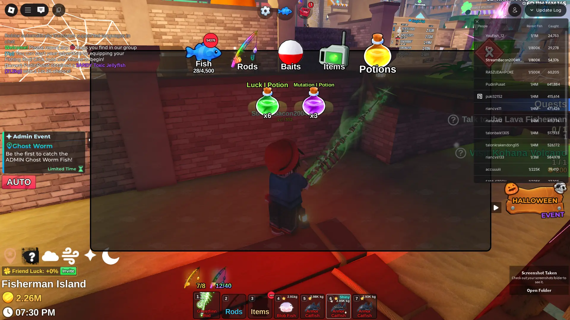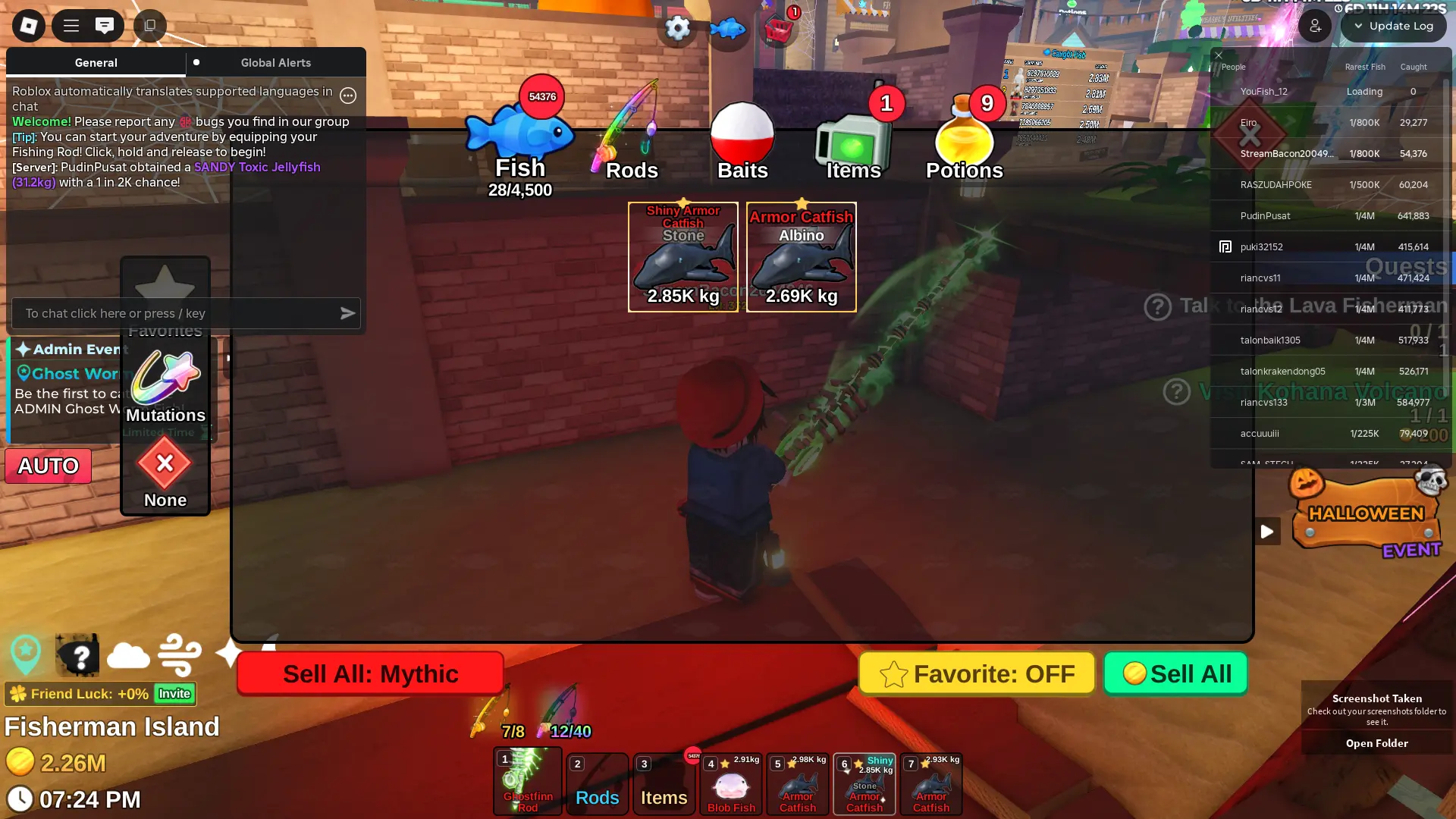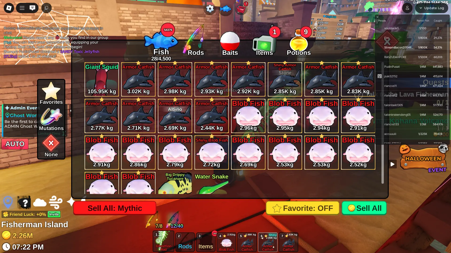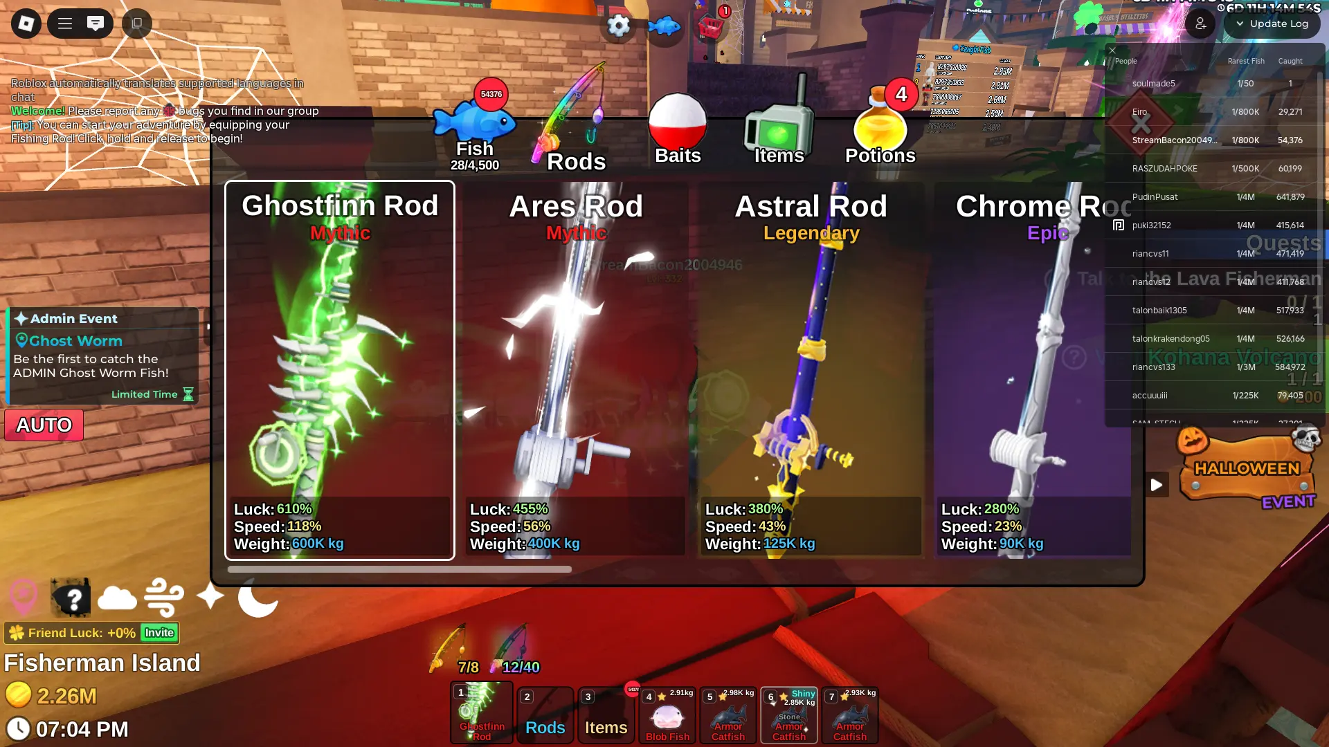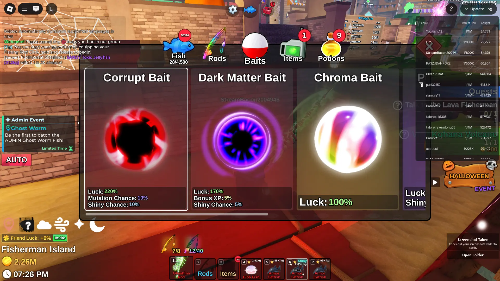 Fish it Account ❄️ 2 mythic rod ❄️ corrupt bait bait ❄️ secret + mythic Fish ❄️ 1/800k catch ❄️ 2 million Coin ❄️ Skin Rods ❄️ Level 332